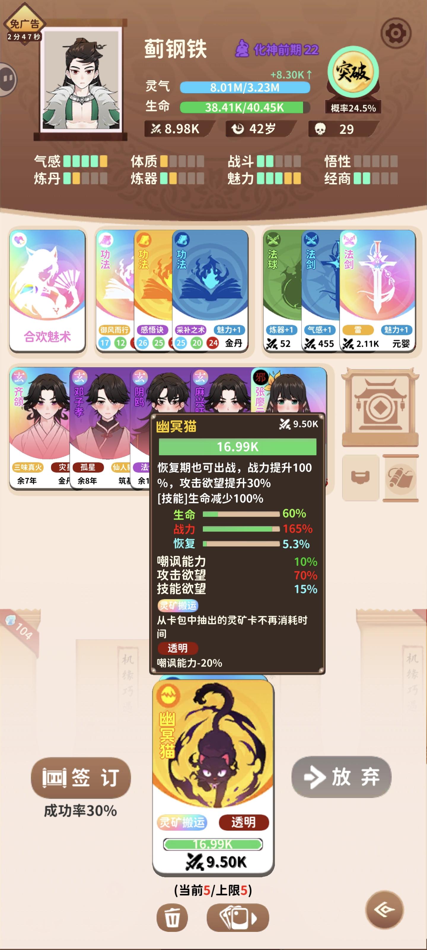 全成就拿下,最麻烦的就是登天路了,纯磨时间🥲其次是那个狐狸宠物,毕竟目前版本宠物用处非常小,单独去刷就是浪费时间,平时点又污染卡池,最后是搞了个长生,刷了快一千岁。简单说一下游戏,其实重要的就两条,灵气和突破概率,每种传承就是一个职业,能解决突破概率就想办法凑灵气(气感,实际上灵气根本不是问题,不考虑上榜的话),能有大量灵气供应的就凑突破概率(炼丹,药王谷,雨润万物,入土为安),套路都大同小异