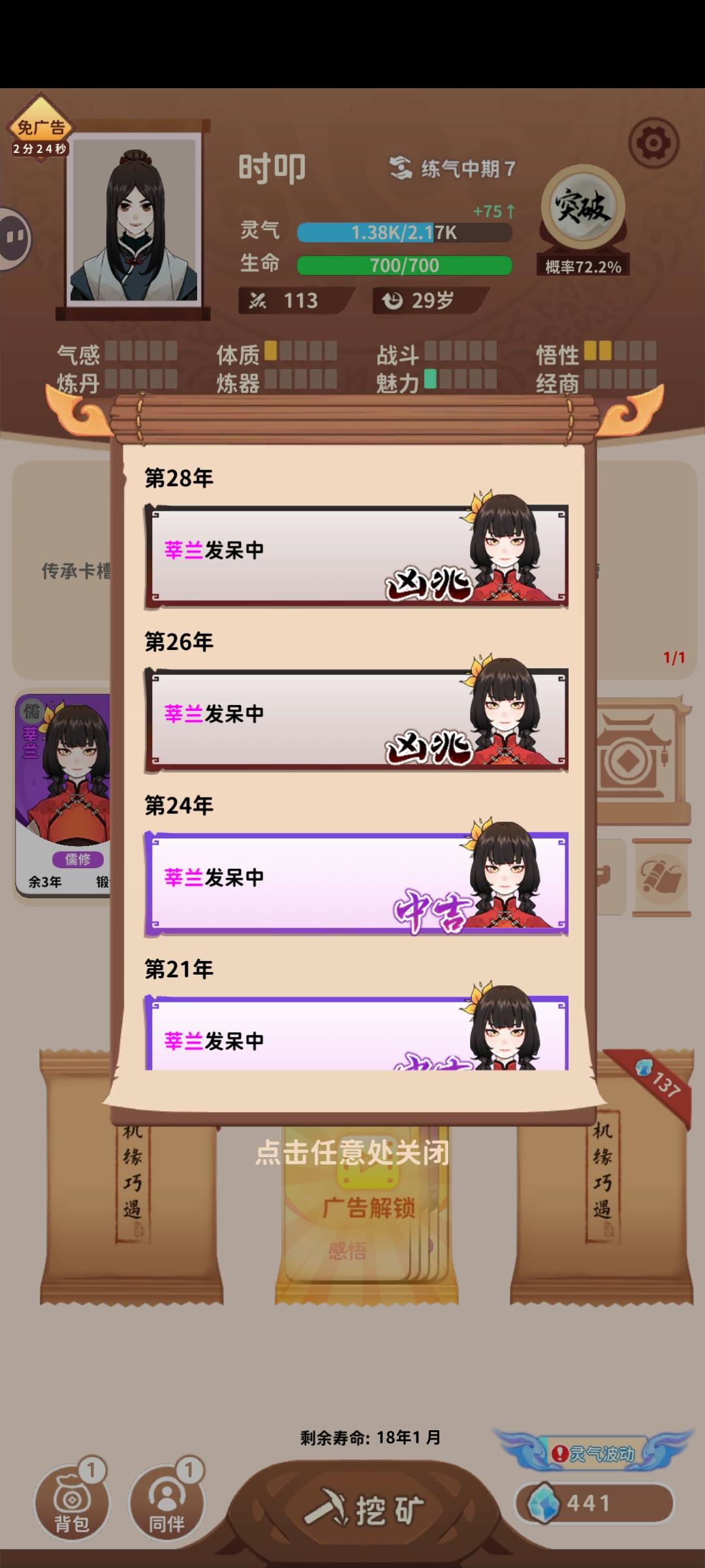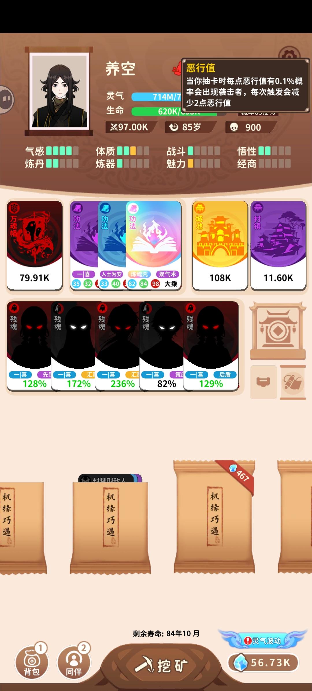 个人DIY,已发送给官方,被采纳几率不高,大家可以先当个乐子看看——新传承:万世轮回功——无法获取灵力,每次死亡后会重新复苏并提升境界——轮回: 因灾厄/敌人 死亡时会重新复苏并提升3/1个小境界—通幽: (获得 替死咒 cd:6个月) 同伴下一个运势为死劫时,可以使用替死咒替死,复苏后自身随机天赋+1,寿命+5年—阴气缭绕: 敌人战斗力下降20%,结交同伴概率降低20%—天