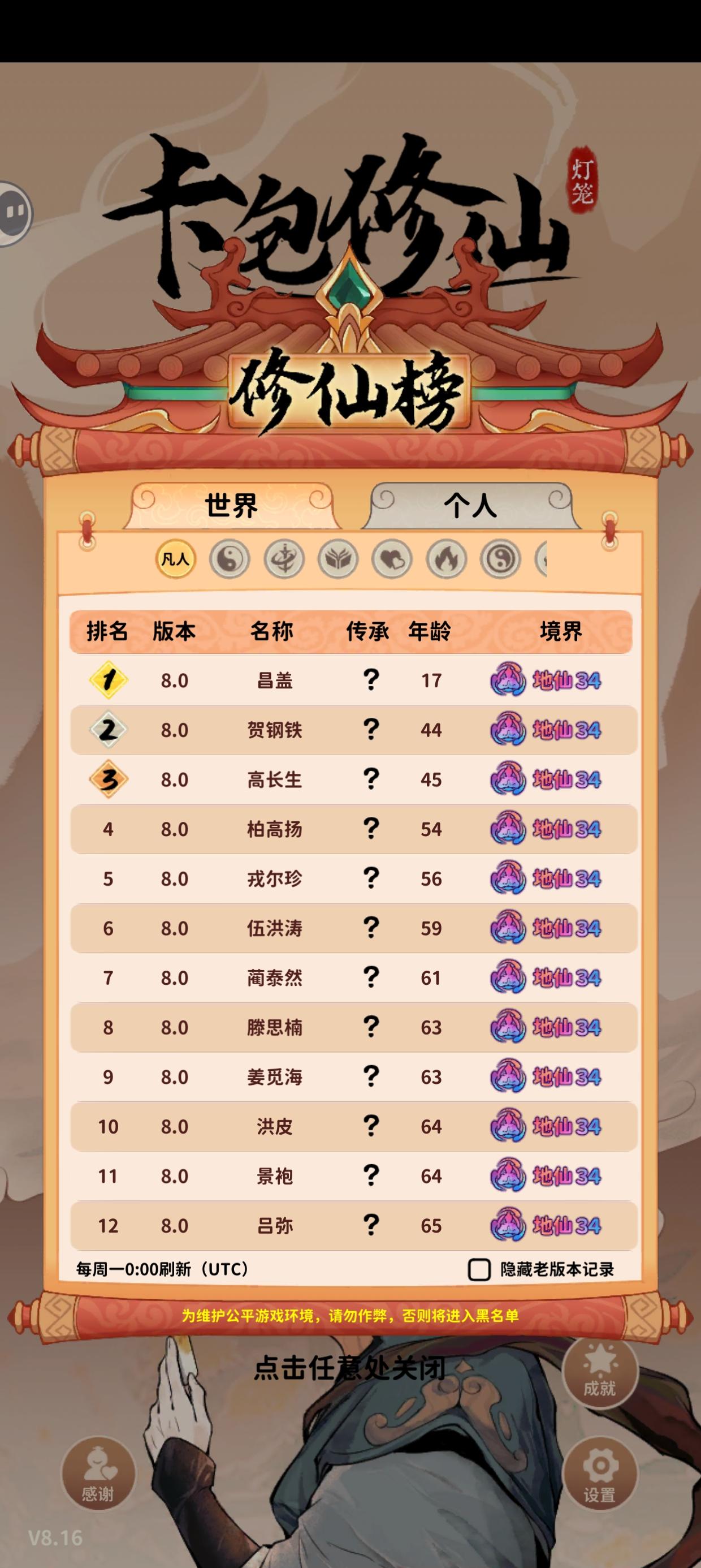 这个排行榜没有记录,我过了两次一次有夺舍一次没夺舍[表情_晕了] #卡包修仙TapTap测试版