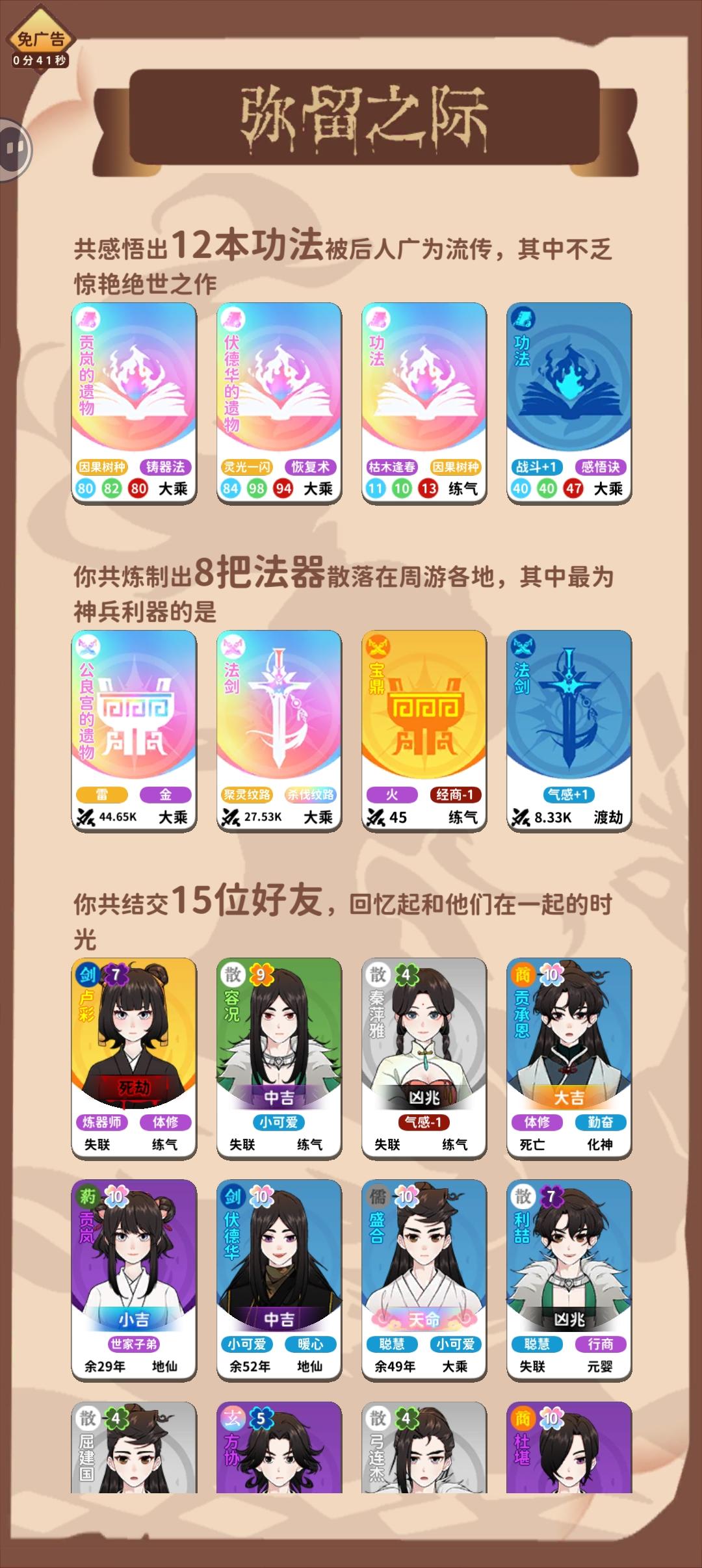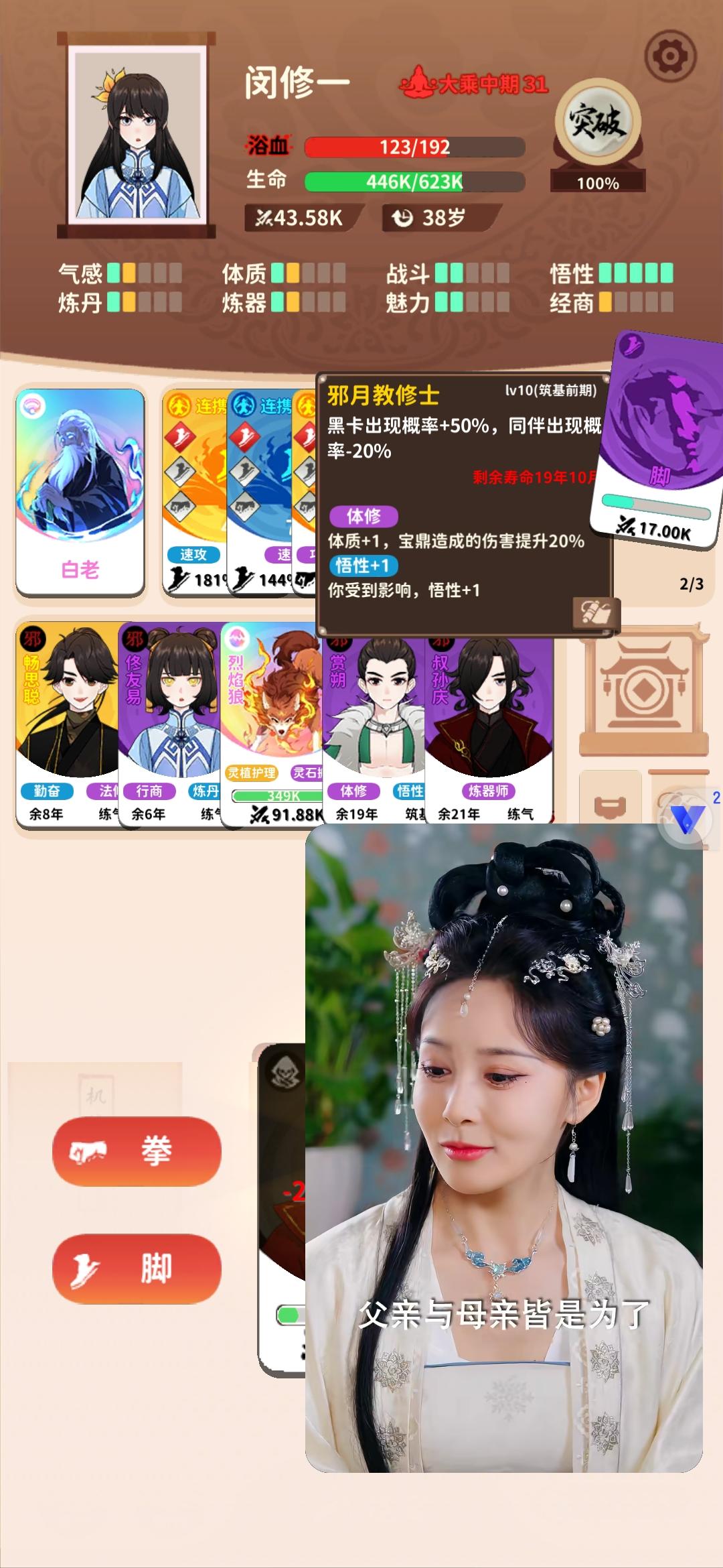 前言——目前通关两次,后续会尝试更多流派。第一次做小白攻略,不足的地方请见谅,很高兴我的攻略可以为你带来小小的帮助,自己去探索流派会更加有趣哦~欢迎补充----------------------------------------------------------------------------属性——气感:每一点提升20%修行速度(很重要)魅力:结交同伴时影响成功率(不要放跑超级