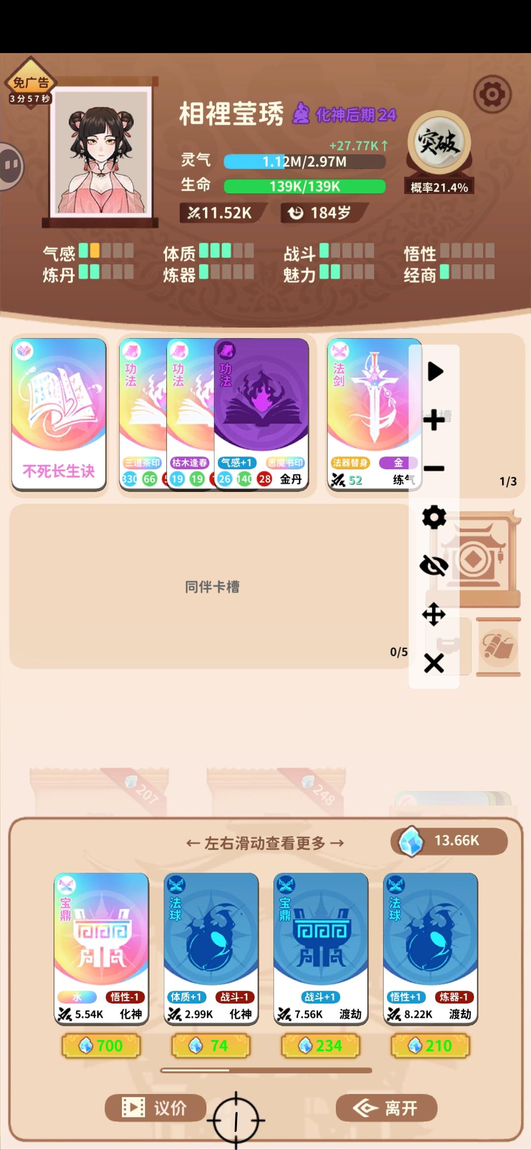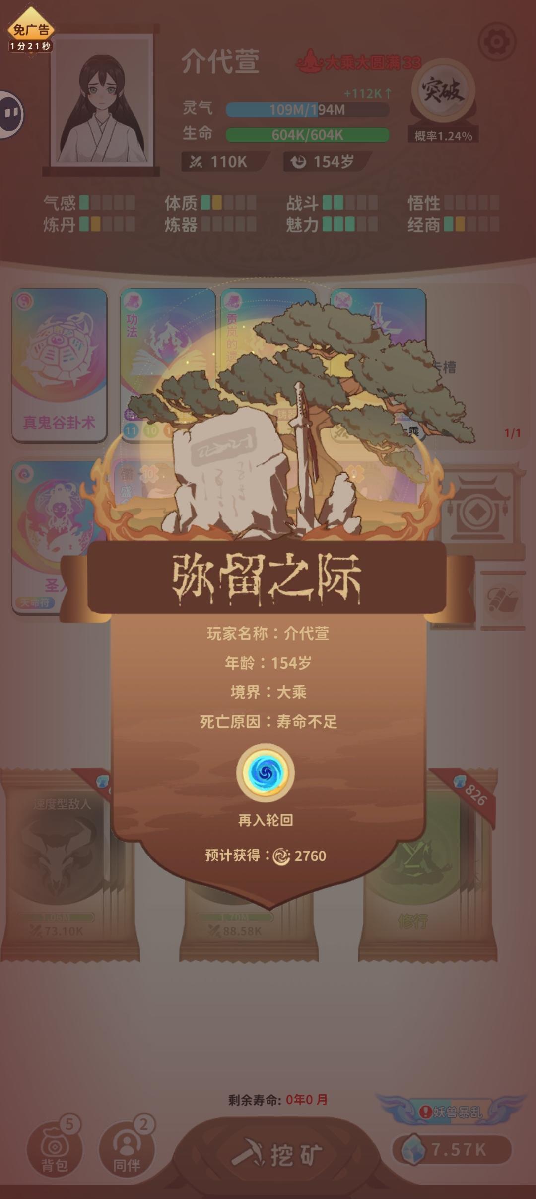 前期肯定要看广告把不死长生诀弄出来,弄出来了过后就需要刷轮回点了,怎么刷呢?开局前期先把宝阁调成10年内碰两次,前期有钱的情况下每个宝阁必须开找枯木逢春和恢复术或大恢复术,其他卡包一个也别点,只点宝阁,找到这两个后,后面宝阁只需要砍价拿突破丹就行几率80%再去突破(有更好的功法可以换,两个词条最顶搭配:恶魔书印+大恢复术或枯木逢春),武器词条要体质,武器会坏可要可不要,然后就是无限挖矿-宝阁-突破