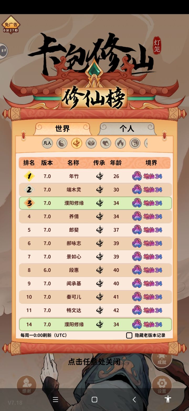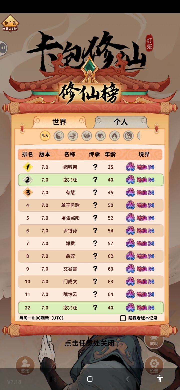 15岁结交了练气期的道友,一路跟着我从练气走到了化神,经过了22次境界提升,一直没有遇到自己的死劫,商贾出身,世家子弟,妥妥的主角模板啊,他的履历:21岁 炼丹炸炉38岁 神识受损42岁 炼器炸炉63岁 灵石被盗68岁 心魔87岁 灵石再次被盗118岁 武器爆了寿命用完之前我会一直看着这位道友能走到什么境界持续更新。。。。。