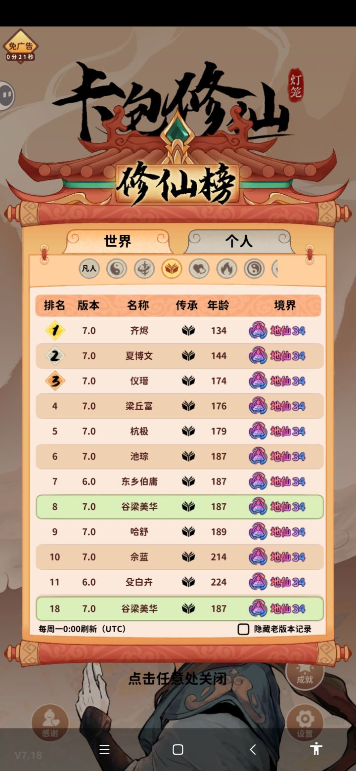 上周末才玩的这游戏,简评总结一下,如有错误和疑问,欢迎指出。鬼谷卦术,比凡人修仙多个透视。可以搭配锻体神术速刷点数,后期卡包基本全开的,透视作用就小了,排名给个t1.5吧。蜀山剑法,新手最初能感受到战斗爽的传承。新手开局刷个彩水剑,然后后续拿到恢复术和蜀山传人,基本宣告通关了。蜀山不缺灵力,不缺灵石,经常卡在突破,可以点几点炼丹加快速度,打怪时间稍长算是蜀山唯一的缺点了,总体给个t1吧。长生