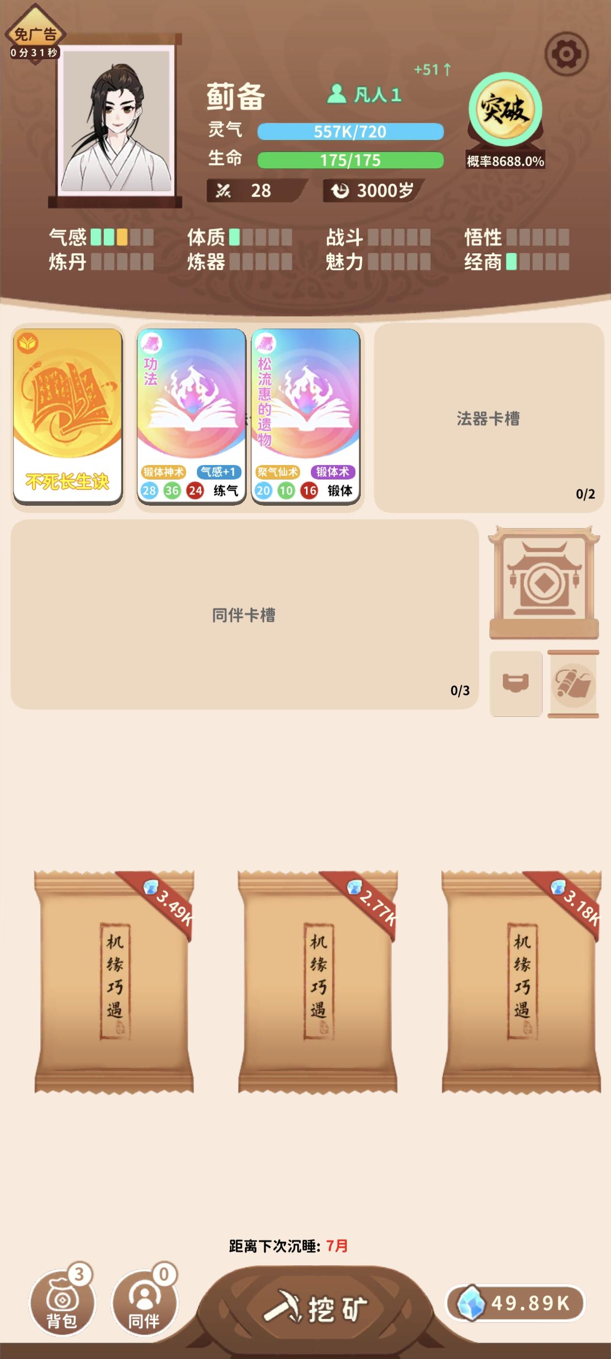 不为了仙,当个耐心的观察者,为了看她飞升我甚至用上了最低级的夺舍人选就为了等她,最后一张图我的地仙道友旁边那位长生体活了两年就暴毙,给我担心坏了,希望以后加个赠送法器丹药甚至替人渡劫改气运的功能吧。夺舍佬终于是见到了道友飞升
