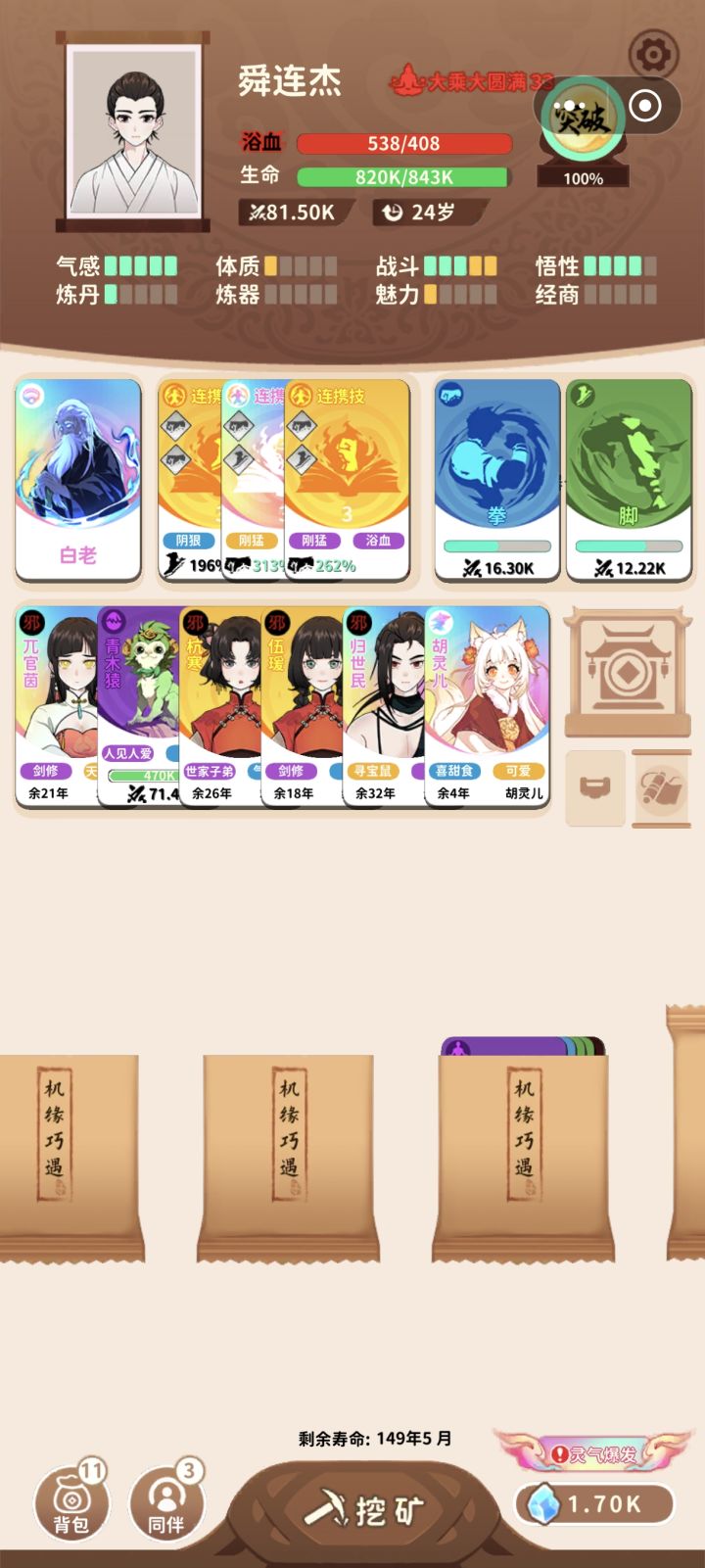 开局属性气感悟性拉满,视频广告加成一定要刷出修行速度20% ,剩下属性点战斗和魅力。(图四和图五是较为合适的开局)然后传承选择真鬼谷刷出一个气运不算太低儒或者邪道友,词条选择加功法感悟品质的 然后游戏过程中最好前三个卡包有灵兽,帮助度过前期以及靠境界压制秒怪速通 境界压制的具体实施方法如图三,保证在第四个卡包出现时没突破(卡包里面的内容在出现时就决定了,这样可以保证比怪高两个小境界以上) 道