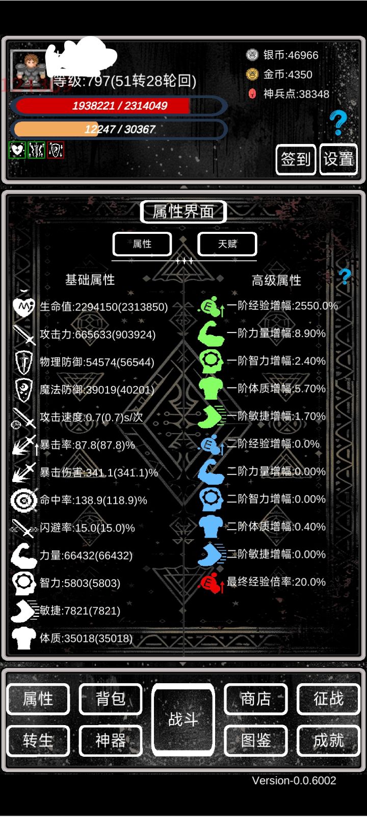 ③转生前可以洗练五次四维属性,力量+体力>智力+敏捷就可以了(这个初代版本防御没啥用)
