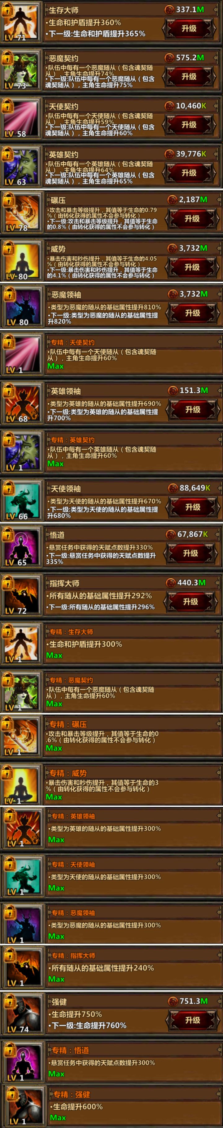 天赋分两页,第一个是推图用的生命流!第二个是挂机用的资源天赋!天赋洗练最好是在开启专精之后洗!所有礼包在天赋洗好之后再开!#暗黑主宰攻略 #暗黑主宰