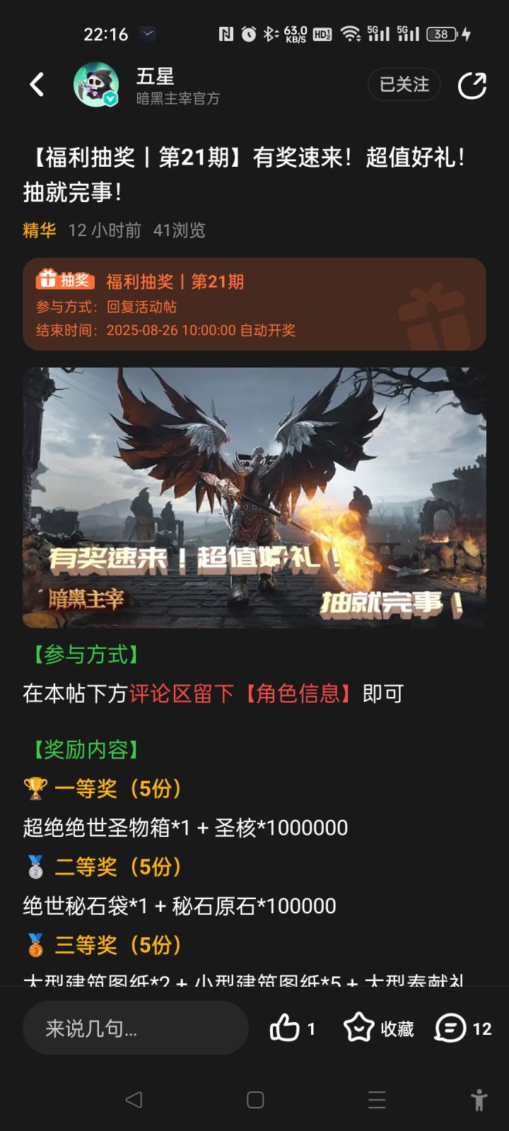 【参与方式】1、在《暗黑主宰》官方社区中发布新帖,晒出预约截图(记得加上个人水印才有效哦~)2、社区发帖之后,需要在本帖下按要求格式进行回帖才能记为成功参与本活动。回帖示例:已预约+链接:打卡帖链接注意:回帖内容必须包含「打卡帖链接」【活动奖励】预约成功的玩家,在游戏上线后联系客服领取免费游戏礼包码在所有成功参与的楼层中,且有效楼层≥3000楼,会随机抽选1位成功参与回复的欧皇,送出
