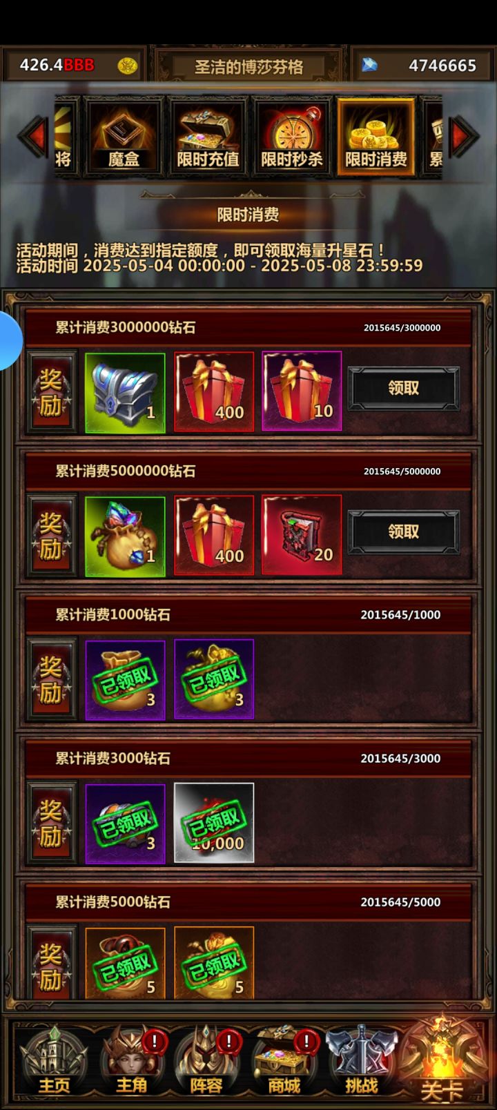 等级转生重点,普通玩家稀有必堆。钻石买体力