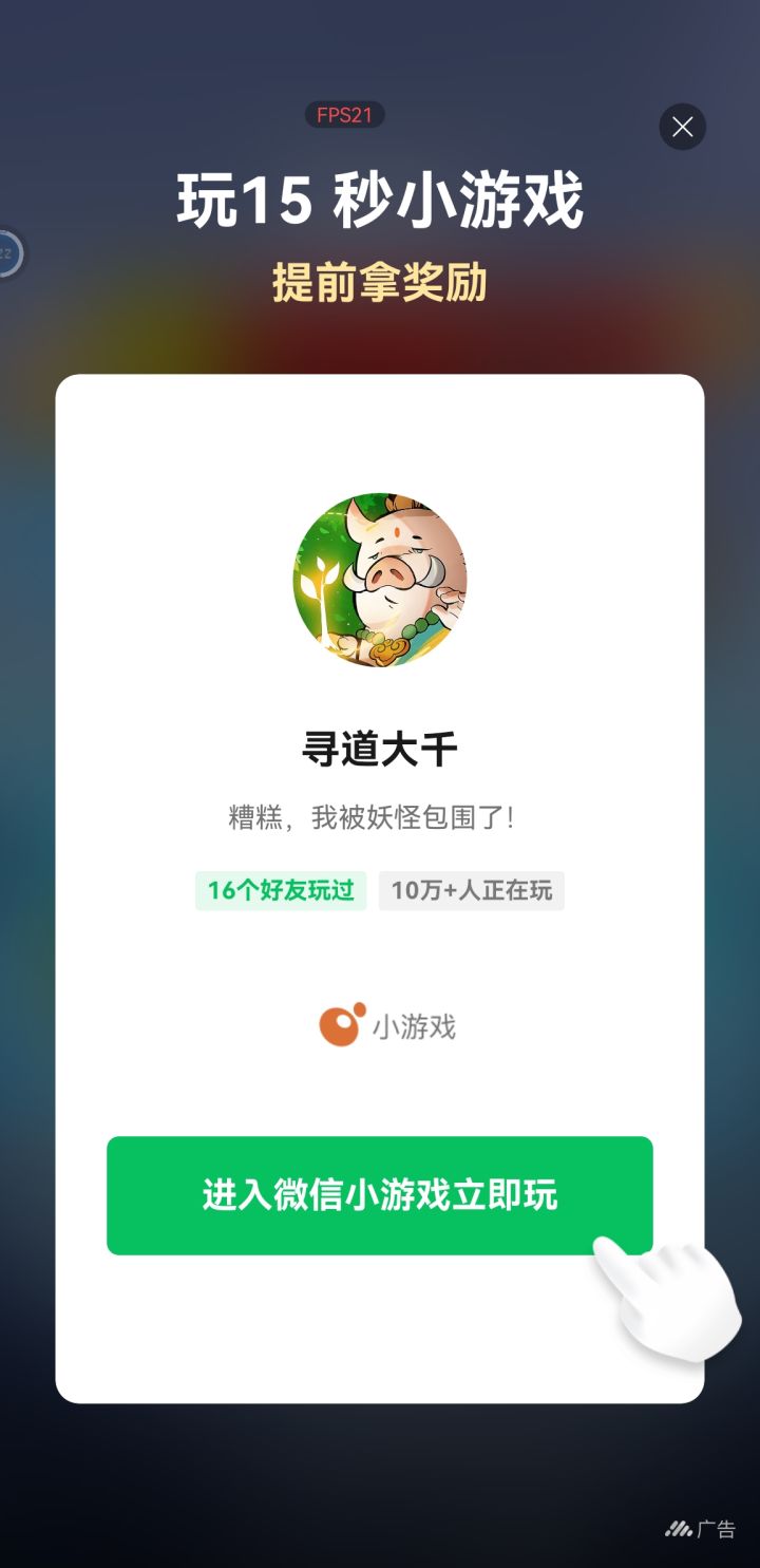 玩的话,还可以挂机小游戏,但是广告有点恶心人,它不是那种 15 秒时间广告,是那种 15 秒以后要点开微信小游戏那种广告