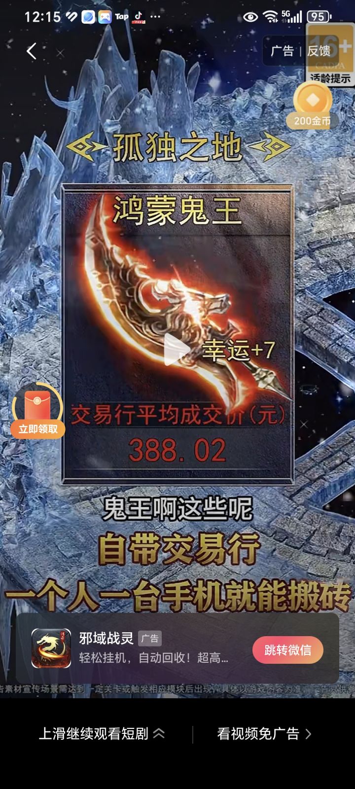 这游这游戏基本上后期就很无聊了,但是有的时候还需要看广告,给大家来个好点的办法。个别手机的微信无法实现。龙神赐福→看广告→分享 →企业微信→ 大退出去→ 再次点击微信,解决