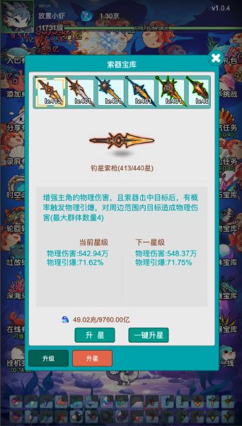 1 剑器宝库与对应副本开放2 增加时空之眼3 主线增加抗性显示4 主线增加“失败继续挑战”选项5 主线全部怪物一次性上场6 升级道具数量显示顺序调整:拥有数量/消耗所需数量7 副本显示剩余怪物数量8 野怪被打会加速移动9 快速挂机次数改为使用消耗道具礼包码:libao1libao2vip666vip888