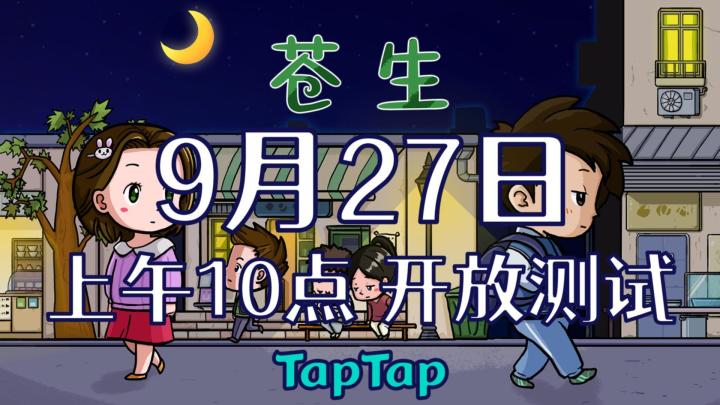 你好,我是夜雾,你应该也从标题看到了,我们的游戏<苍生>将在9月27号的上午10点开启开放式测试一般来说,这里应该说一点激动人心的话,但我不得不先给你泼一盆冷水,不是刻意叠甲,而是我们现在游戏的情况真的就和标题说的一样,他甚至不能算是个<试玩版>,只能算是一个能运行起来的<游戏框架>,从游戏时长上来看,目前的进度还没做完幼儿园,并且只有一种家境可选,从游戏机制上来看,也有很多需要优化设计和深入调