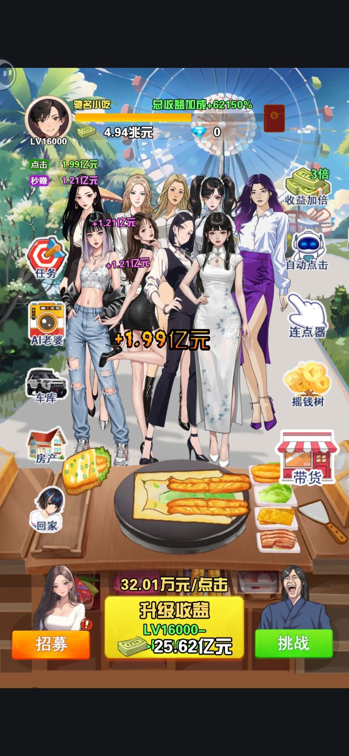 几个失业在家的大龄青年独自搞的小游戏,有广告,正常看2-3个广告开启自动点击就可以慢慢挂机了,如果你有插件可以白票😂