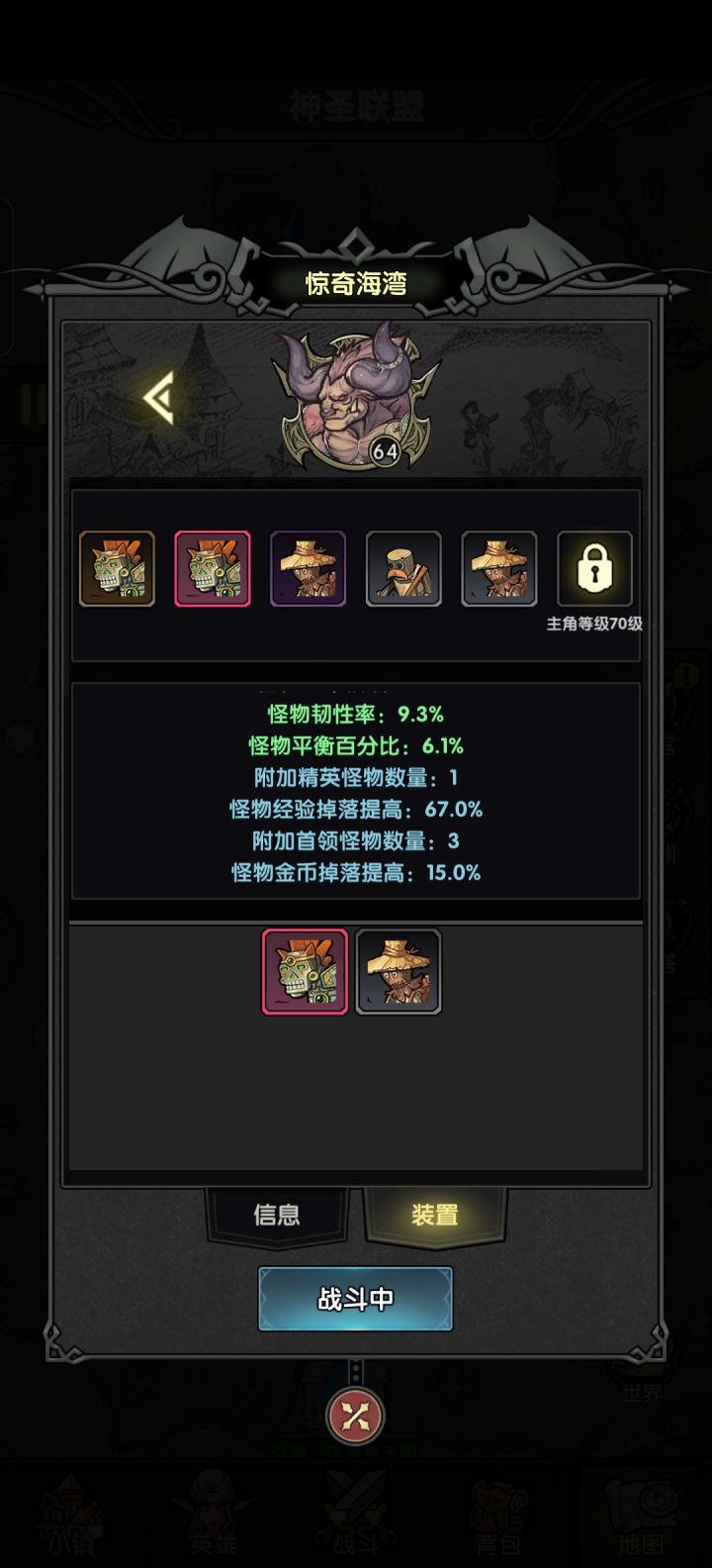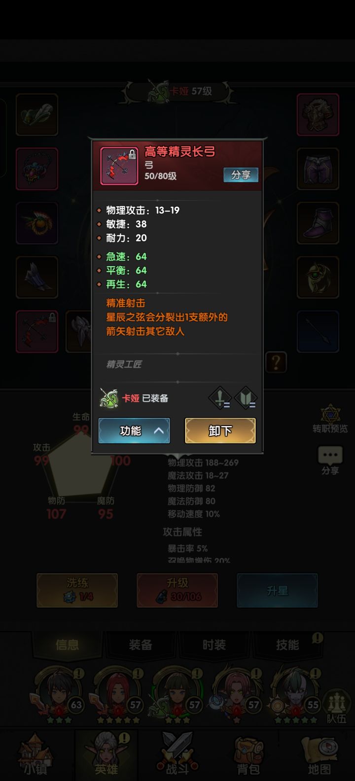 第一个角色伤害问题,关键是看战斗等级。1.角色等级与战斗等级,图1角色63级战斗等级只有59,这是由穿戴的装备等级与装备品质所决定的。装备等级越高战斗等级越高,造成伤害越高。战斗等级与怪物差距越大,造成伤害越低也更脆。相当于等级压制。所以装备优先看等级,等级越高压制越小。打个比方你10级1万攻击去打20级BOSS,不如20级1000攻击打的伤害多。所以优先提升战斗等级,装备选择优先等级>品质>属
