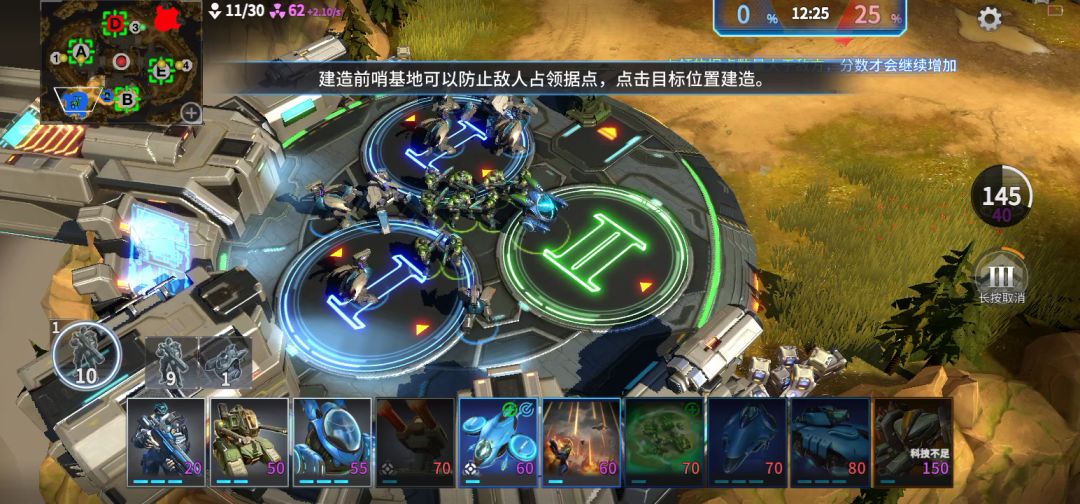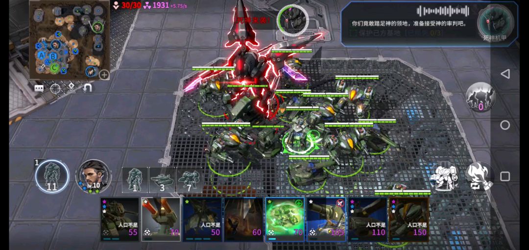 开局升2本,拿下上下两个矿。下面矿的敌兵会先来先去下面矿守一波,等到二本了就在右上角左右基地放光束和夜莺(左边光束和夜莺各四架,右边基地光束5架夜莺4架才能防住,记得开双编队守基地的放在2编队)。自己基地也要造光束和夜莺,有钱就给上矿放毒刺