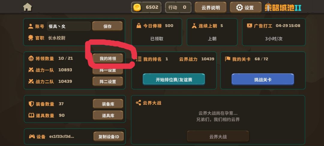 我发现论坛里的马超复仇更不上现在的版本,毕竟玩家越来越多,ai也越来越完善,言归正传如下是攻略: 第一步如图① 一个良好的开局绕不开一个优秀的逻辑能力以及武将,看广告神将,可以使我们前期尽快的建立好优势,平常只能获得一个武将,加入群之后,群里有礼包以及福利,可以一次得两个,大大增加游戏开局的可能性,感兴趣的小伙伴可以了解一752671255。 第二步如图② 看完广告后可得一个神将(入群之后可以