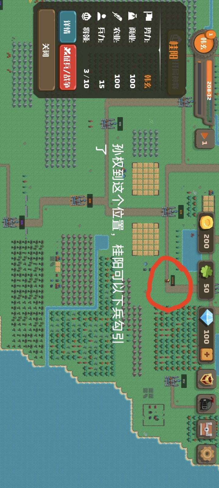 自从发现打掉敌人的部队选择放了可以反复打之后……开局狂点广告神将不点好的,卡出来两个神将凑一个七人队守一个城,前期只要发育不太慢有两个技能基本都能守住,看那边来敌人部队就放两个满兵将领过去堵路(8将城就放一个)路上遇到直接点撤退,在隐身期过去之前改变目标然后原地驻守,这样守住进攻之后放一个敌方将领撤退就会让他陷入攻城→撤退→遇敌→失败撤退的循环,因为没兵所以不管放几个将领你出战的将领都只能获得十