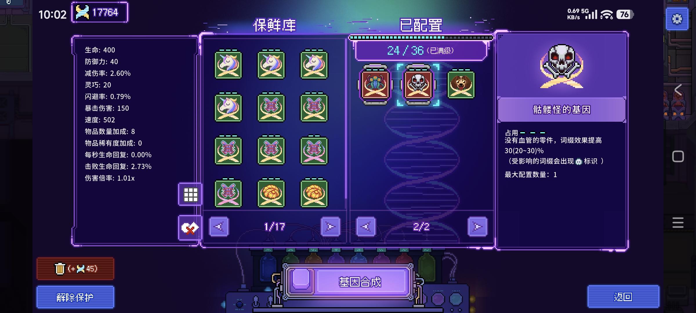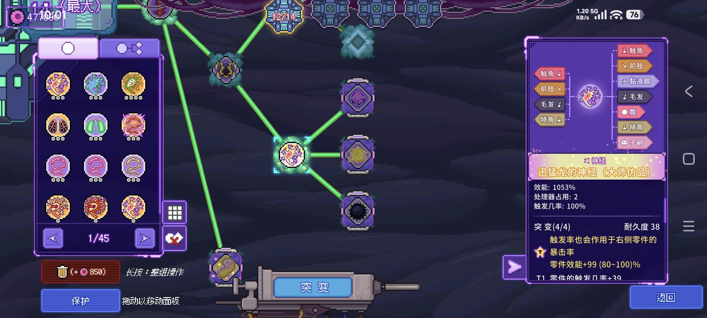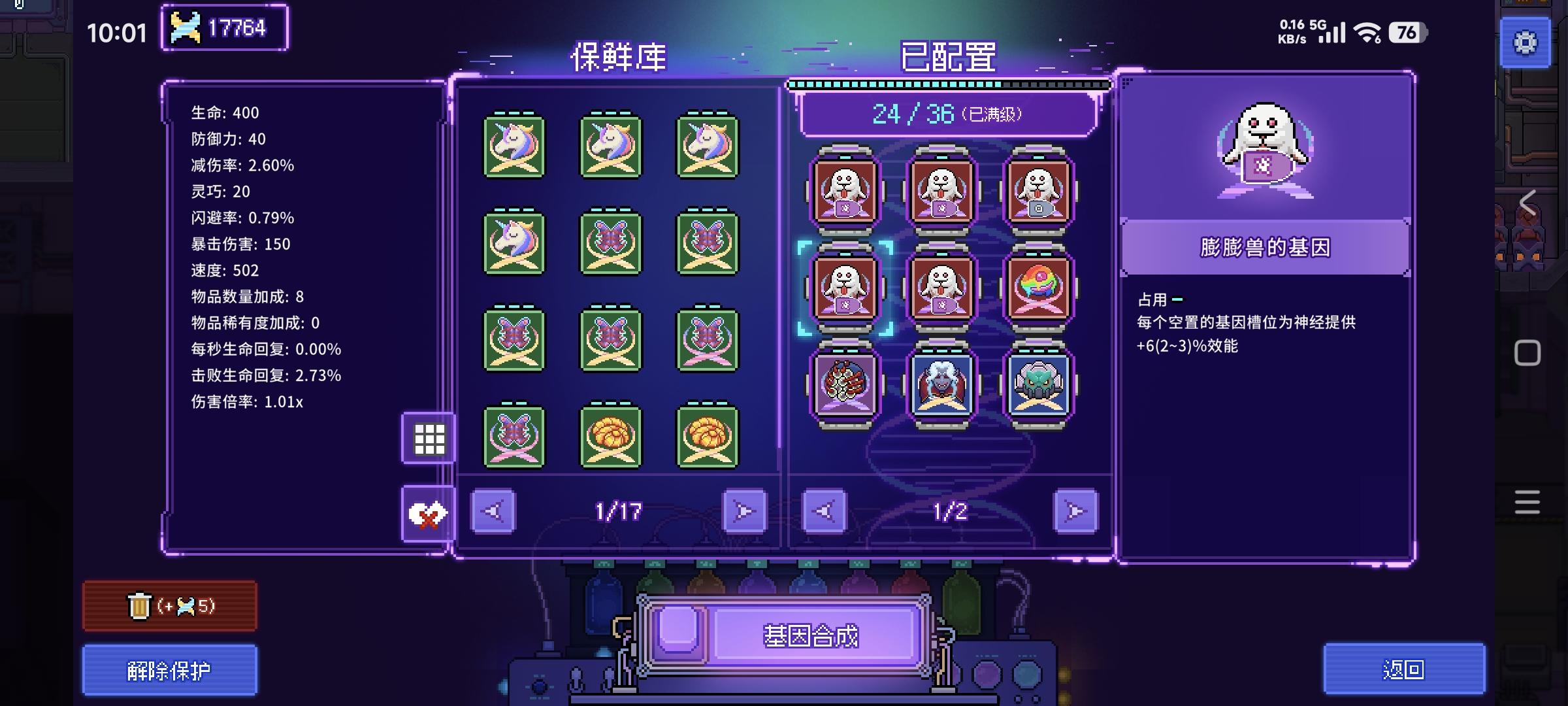抱歉没图片,这个BUG不如说是某个基因的BUG,我其实是调了某个基因槽或者是升最后一级之后,就出现的BUG,我也没明白下线之后就没了!