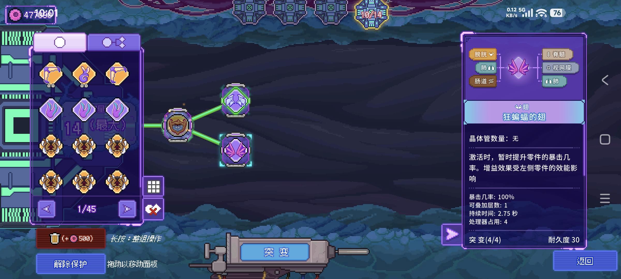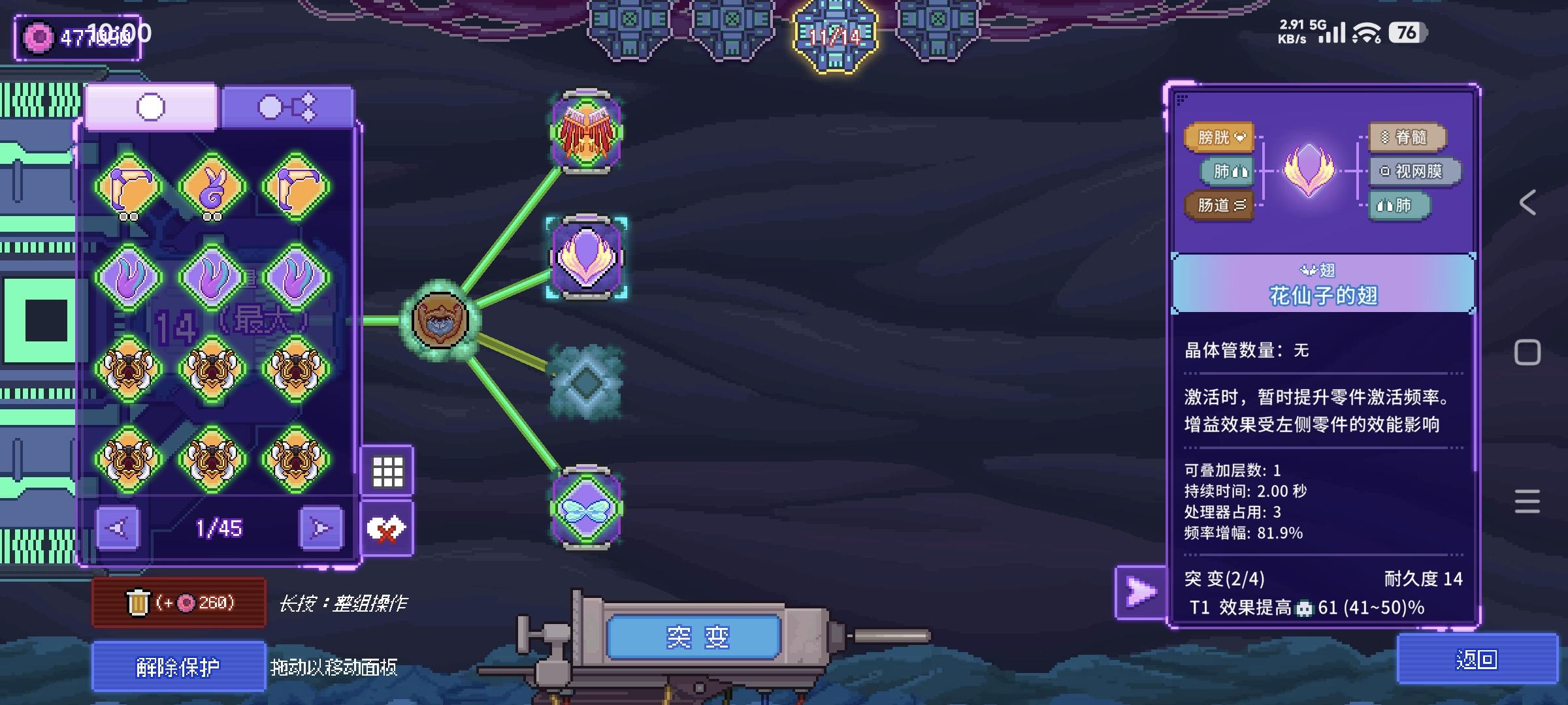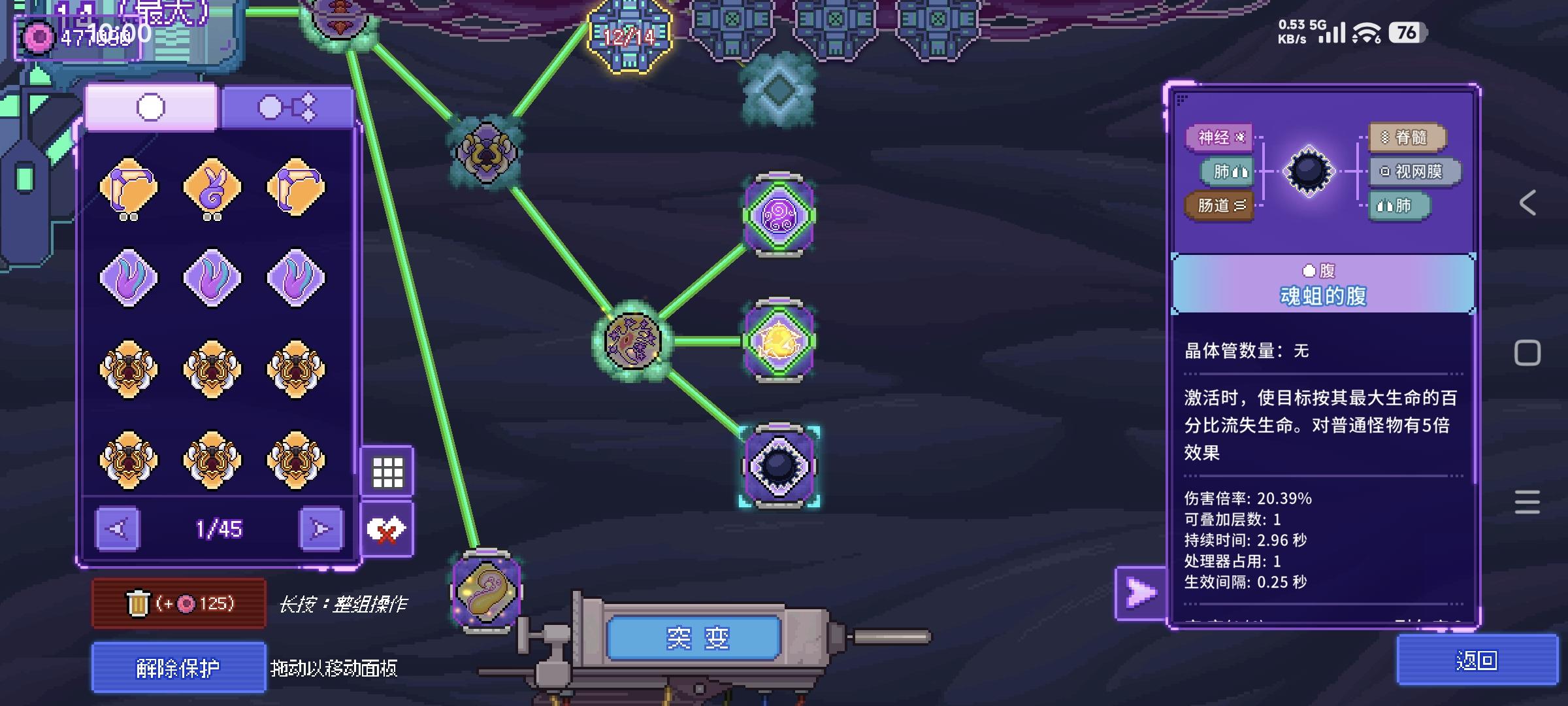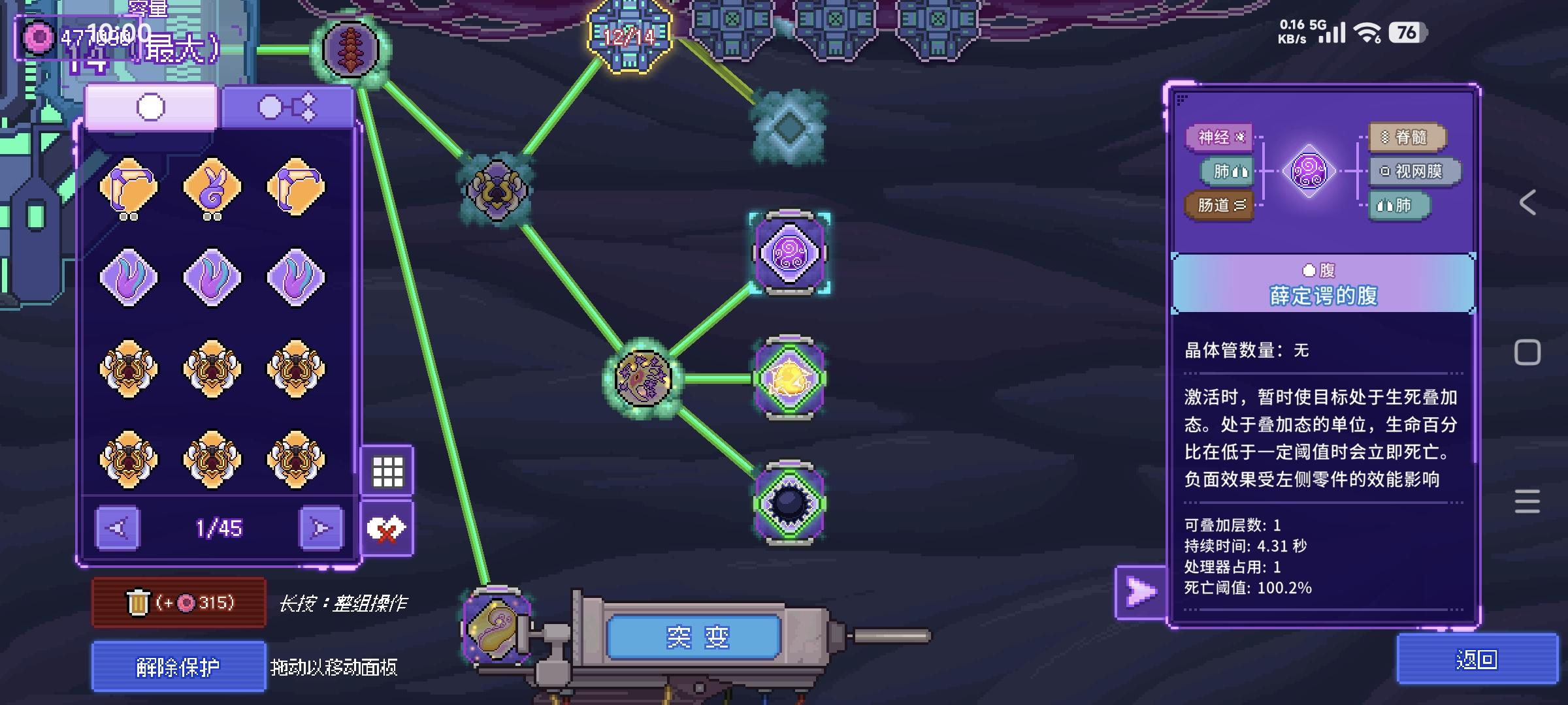 抱歉没图片,这个BUG不如说是某个基因的BUG,我其实是调了某个基因槽或者是升最后一级之后,就出现的BUG,我也没明白下线之后就没了!