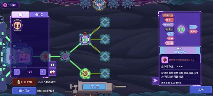 不愧是一代的最终流派,机制杀,自此游戏没有任何难度了,还只用两个大脑。狂犬的脊髓仿品(1-2刷)没要求娲娲头的触手仿品(1-4刷)一定要3血管的,自己加不的肉皇的费大师仿品(boss掉)词条2条范围1条血管最佳,不要选初始范围减小然后慢慢增加,只要频率够高永远在最大范围猎犬的视网膜大师仿品(3-4刷)要刷2个,词条也就那两个薛定谔的腹(打印机专属)核心,上面两个零件的目标就是把这个的数值