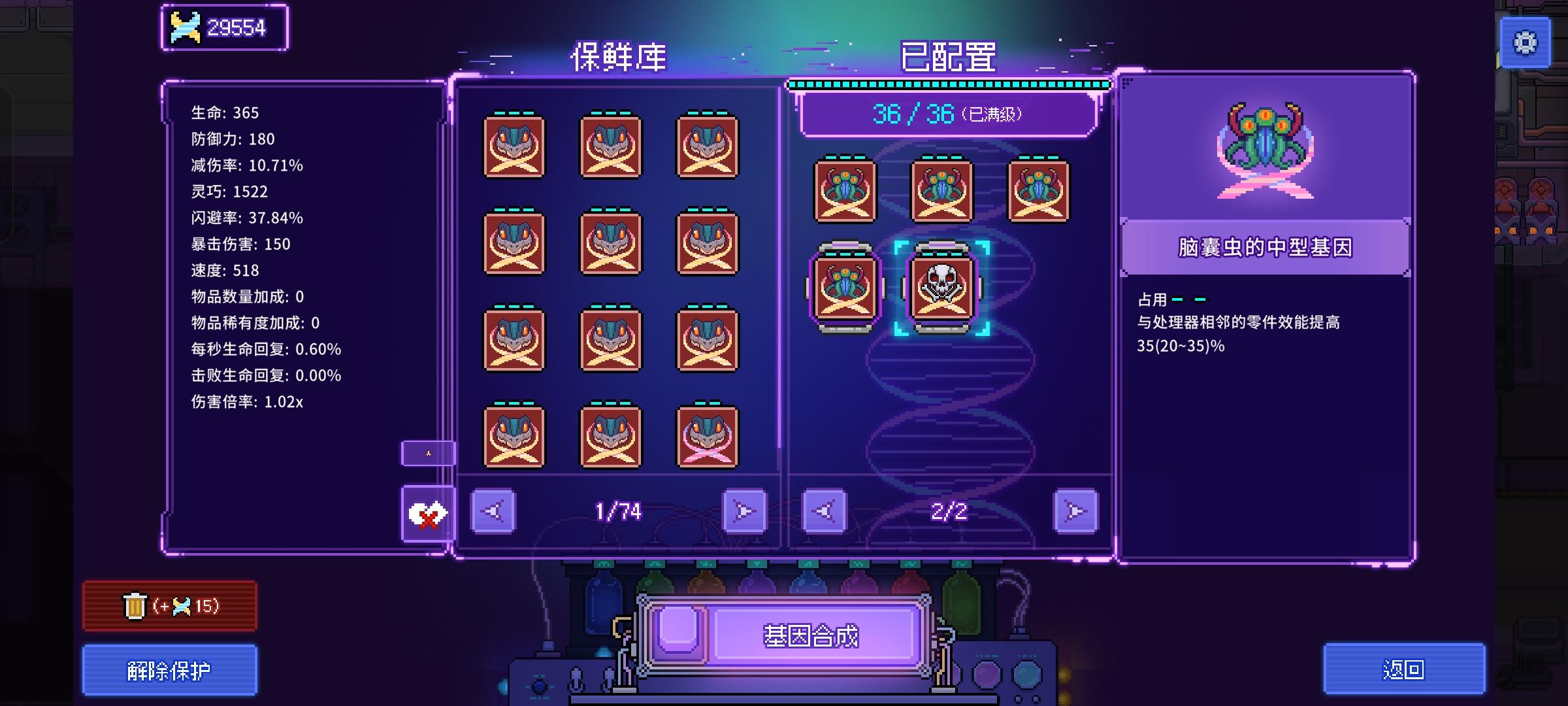 器官不是重点,重点是基因搭配。器官的搭配保证生存性为前提就可以,因为伤害已经很充足了。生存性提升是搭配电鼠丘的腹(承受额外伤害)+幽灵的腹(命中降低)+石像鬼的翅(格挡伤害)+飞影龙的翅(额外闪避),基本无敌了,除了陷阱掉几滴血。伤害我用窝窝头的触角触发魂蛆的腹+薛定谔的腹。用魂蛆输出,可以降低坏50%血量无敌的触发几率。主要堆伤害是用凋螂的基因把超过150暴击伤害转化为持续伤害加成,又安