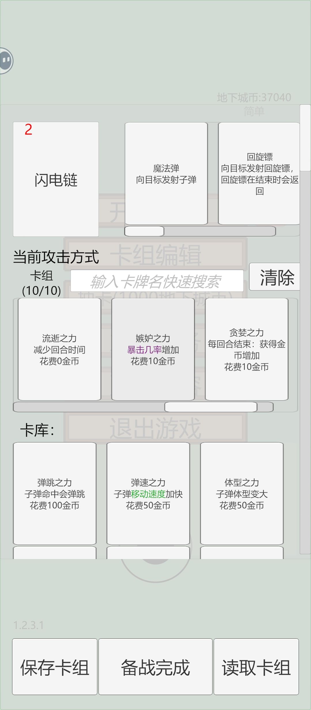 随便打的,远远不是上限 欢迎大佬交流思路/萌新参考 卡组 刷新,改命,利息,小费,蜗牛,贪婪,背包 跳关,时间,翻倍,预习 贪小,三连,寻宝,猪猪 有背包可以构筑+5卡 前期字面意义的一点战力没有 打简单都可能翻车 所以带了贪小和三连 新版贪小砍了(我新提的卡组啊!前天发帖就赶上昨天没) 但是几个免费卡组+金币还是好凑金卡 这把开局roll钱后攒钱点出翻倍(下1/1/2技能双倍效果)和预习(回合开