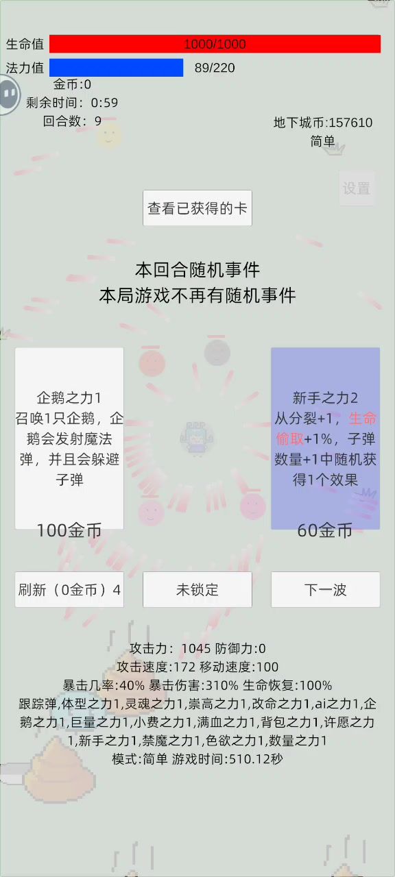新手卡组组成:愤怒之力+懒惰之力+暴食之力+傲慢之力+嫉妒之力+贪婪之力+色欲之力+数量之力 其余两张随意。 上面卡组一开始就有,核心卡是数量之力,然后是色欲,操作就往一个方向走,配合飞刀特性一直叠攻不用躲怪(除了蜗牛)。视频是假装通关的大概流程,后期不太浪,一般不会翻车。