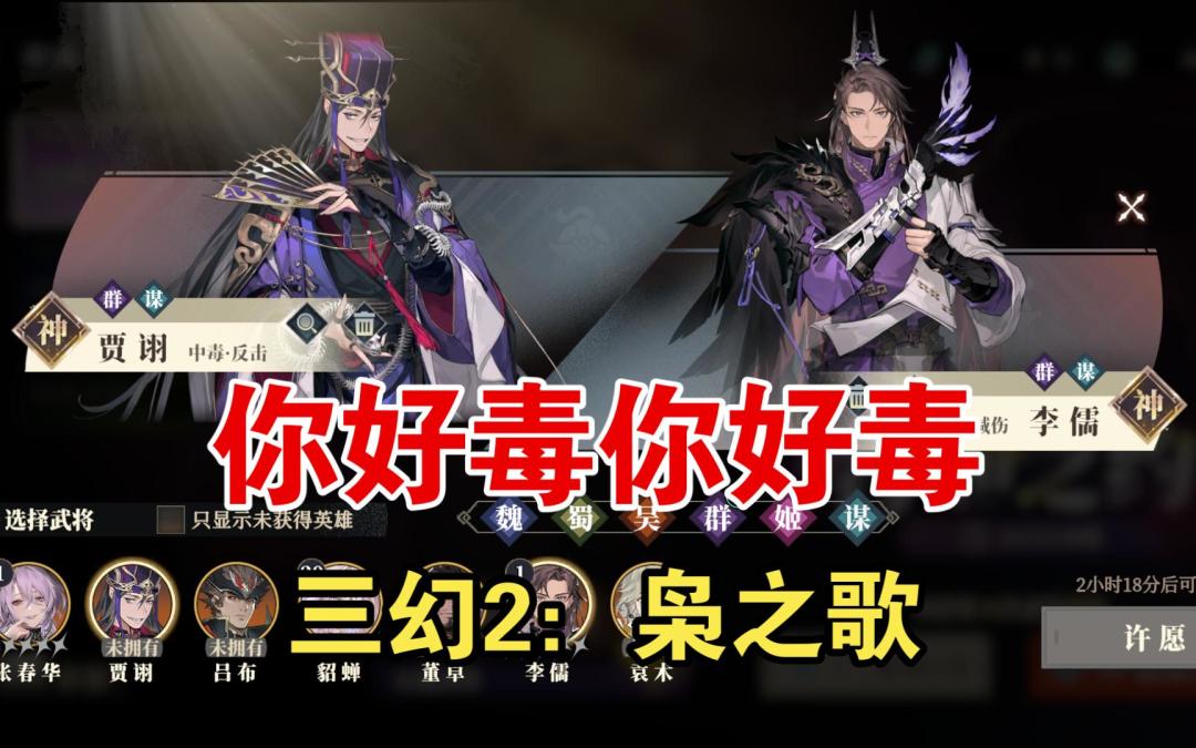 【三幻2:枭之歌】开荒T0毒队加群雄吕布队和火毒谋士队阵容养成