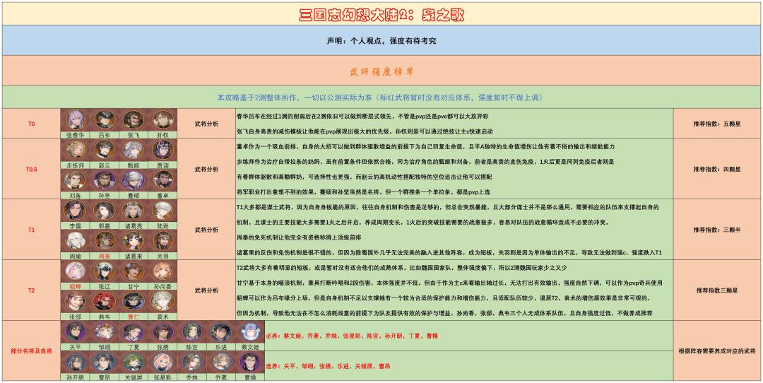 呆呆根据这几天的实际体验自行研制了一份武将强度表,部分武将强度有待提升,请小将军们踊跃发表见解,呆呆会一一为小将军们解答的哦~#浅评一下