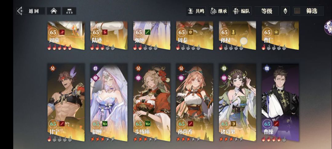 如果你很迷茫,可以留下你的阵容,让大家一起帮你看 一.平民向 1.如果你普池抽的是吴国 这个时候需要看你卡星级来决定配对,当然因为我们是平民,那么注定2队一定是没有强度的,要让他在2队里互殴下有强度就需要去看白嫖到了什么卡,比如楼主我甘宁1火,孙尚香3星,那么楼主我甘宁主c孙尚香副c,双c培养原理是这样的。 2.阵容(非最优解,目前女团较弱,只能是凑合用等后续官方更新新卡后再继续更新) (1)甘