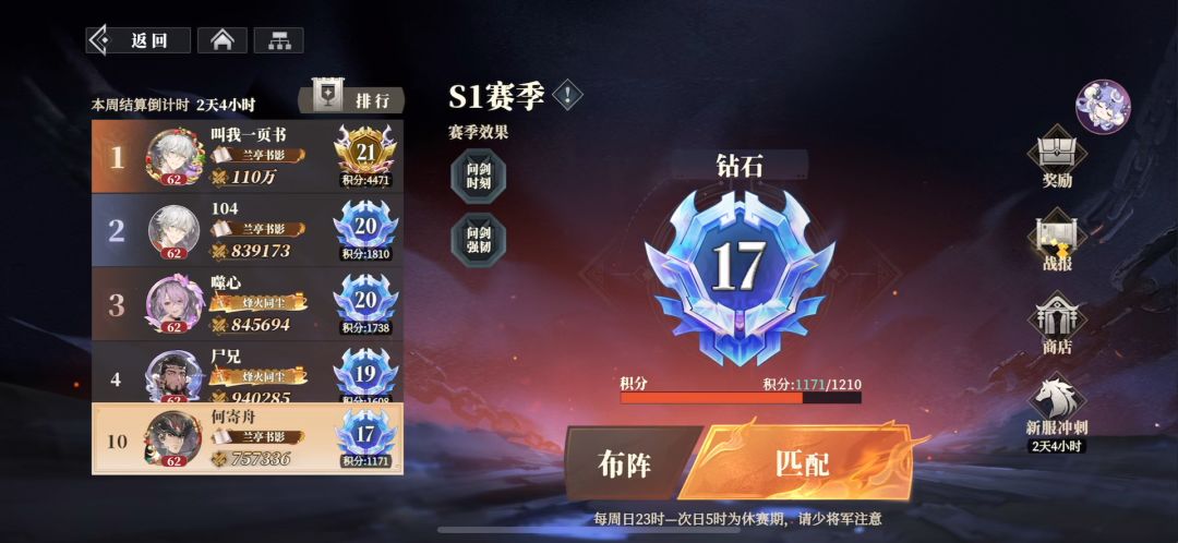 现在新区成本最低的阵容还是火烧,兼顾PVP和PVE。先放自己排名和氪度,下面说说新区阵容思路和资源规划,给入坑新手参考一下。