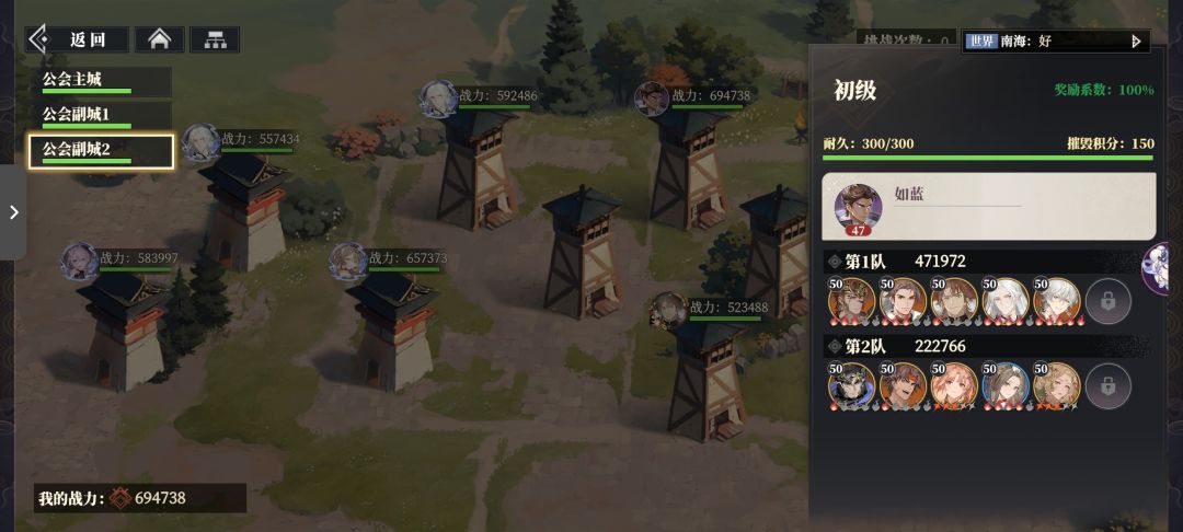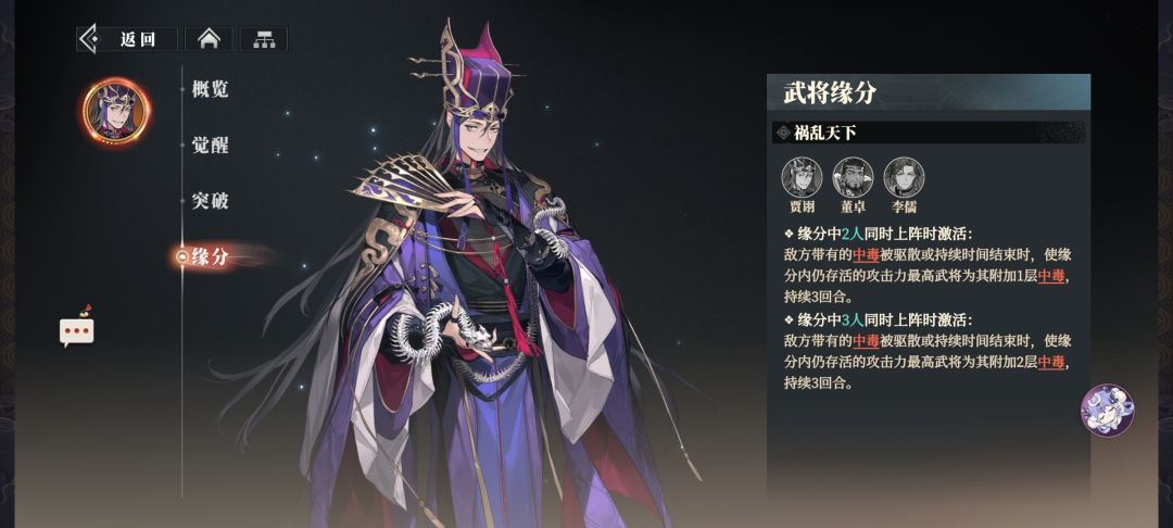 今天来到620,感觉凹不动了,二队物免50%,一直打满10回合,根本砍不动,图是600的站位和阵容,个人觉得二队开群带贾诩李儒可以刮点伤害,如果开姬带2奶靠春华一个人不太行,而且也要发展毒队,无双给贾诩李儒开了先,总归是用的上的#三国志幻想大陆2枭之歌