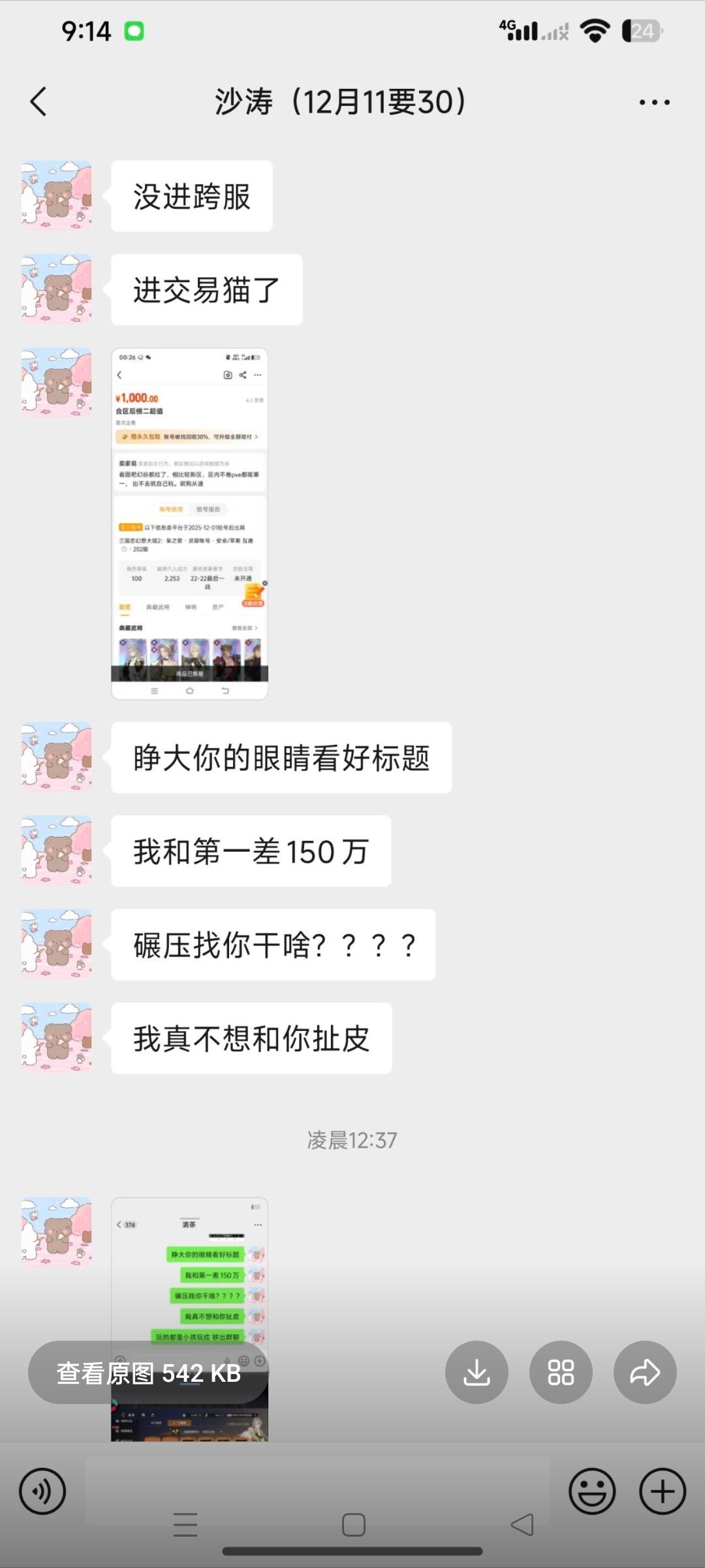 大概意思就是,上次跨服四强碰到第一,八百打不过一千三百万这个确实没办法,季军赛越五十万打赢了对面不结账还找一大堆借口,战力都没进前三的号,后来找他调董卓孙策还是没结账说什么十号发工资,结果就是宁愿氪一万也不结账三十,666