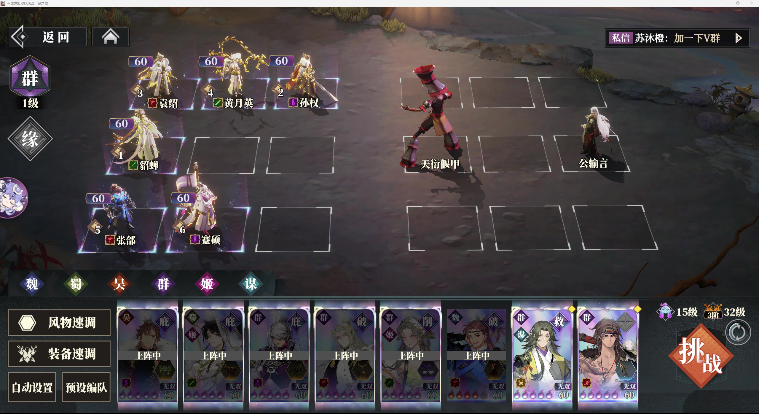 [表情_微笑][表情_微笑][表情_微笑]前排感谢B站两重心提供的阵容和思路,我是在他的基础上进行了优化。 这套自动一定要看我写的细节,否则伤害可能会不及预期。 主要细节如下: [表情_微笑][表情_微笑]1、【特别重要】关于孙权和蹇硕的拉条说明:第1、2回合,孙权拉条张郃【设置的是第三攻】,整个过程拉条袁绍【设置最后排】,后续孙权拉条张郃(张郃带倾星成为1攻)设置的是【最高攻击】,如果袁绍和张郃