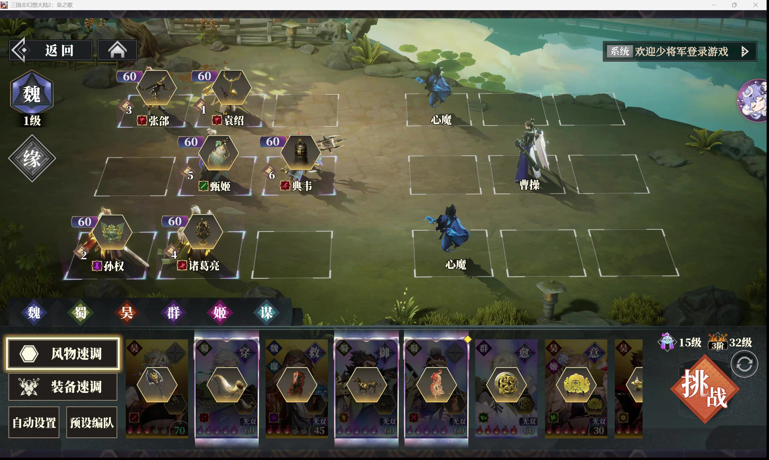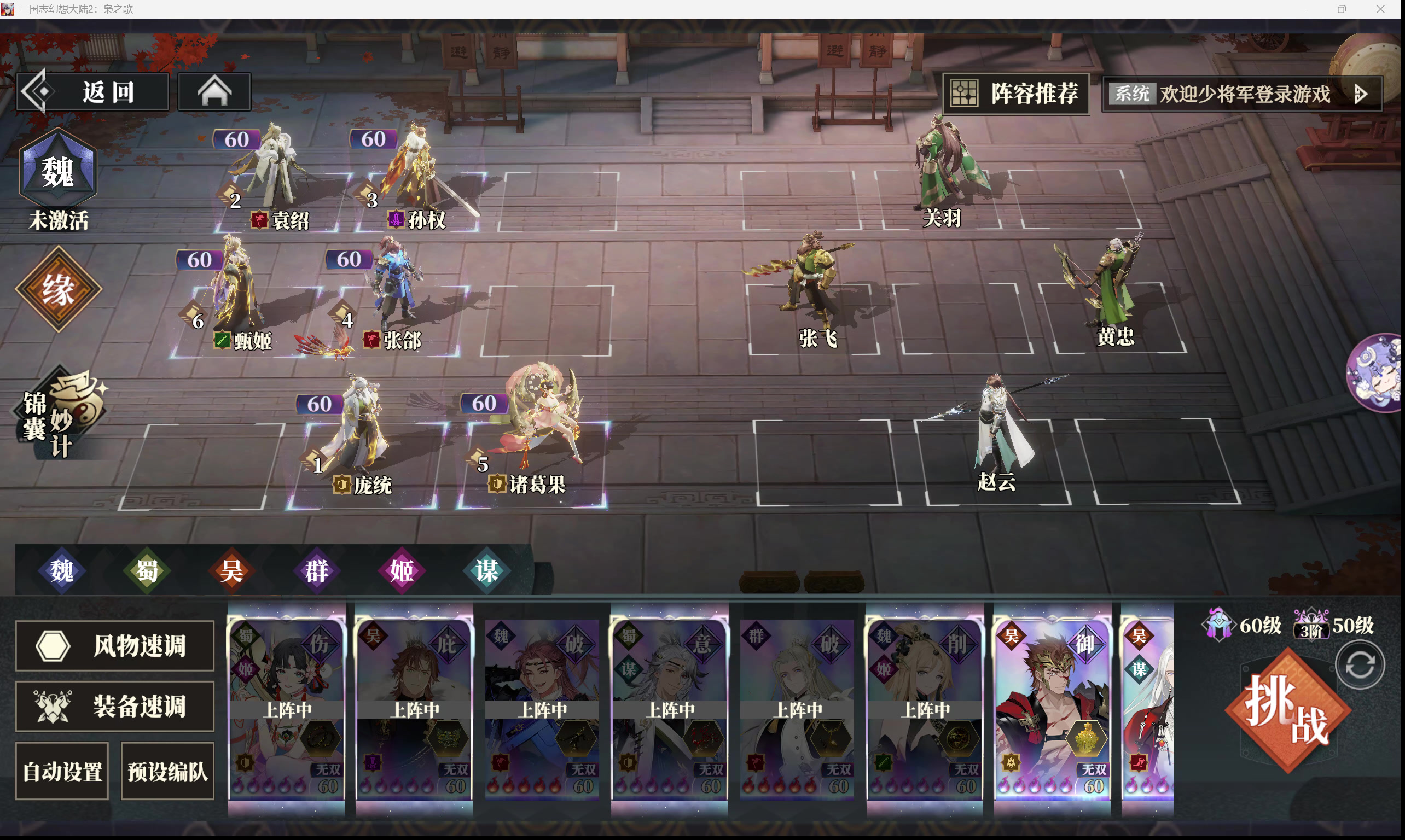 1、这个号基本是顶配的,兵符基本全满了,才能抗住张飞的第二次大不减员,否则也过不了。 2、甄姬要带自己的专武进行拉条,确保能过开出多次的突破和大招,否则扛不住赵云的技能和张飞的大。甄姬的大主要用来保护狐狸,因为关羽固定打狐狸。 3、配速方面,孙权117、庞统119,甄姬104,其他全速即可。 4、善用孙权的沉默打断张飞的大,张飞大招被沉默之后,会直接跳到普攻,包括关羽的也是,需要善用这两点。 5、