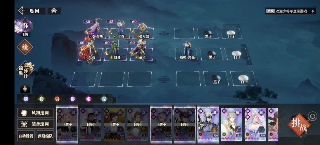 有几位兄弟说过不去,想看看打法参考,录屏发出来。 这里诸葛亮其实用处不大,换成董卓用豪杰与郭嘉互换位置,或者上丁夏帮助邹夫人快速点杀弩兵都可。