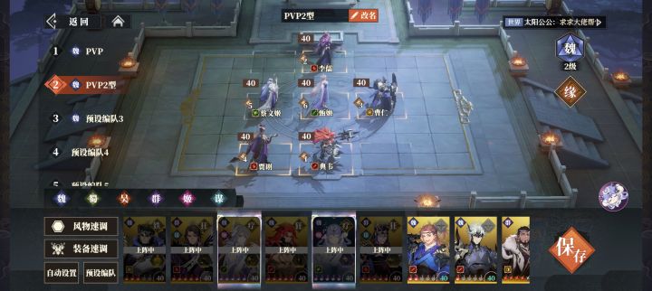 经过多次摸索和实验,本人终于用魏国队伍登顶PVP,特此分享一下我的研究成果。这套整容具有高额的群体减伤和抗压能力,核心是甄姬+典韦副轴是群毒。简单来说就是抗住伤然后反击挂毒,毒能够是对面减少输出和持续输出,多动能够多次群体回血和输出,再加一个蔡文姬群体强驱散保证不会被灼烧烫死。算是针对目前环境主流配队做出的针对了,群直伤我有高额免伤和次数盾,吴灼烧我有群体强驱×2,群直伤混合毒更惨双倍针对,赵