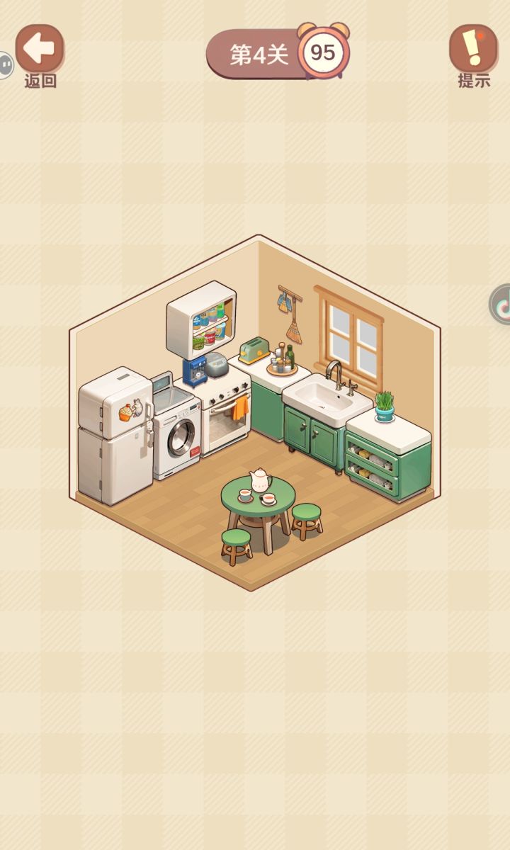 不过没有屋子的关卡定点要更困难一些,比如奶茶店,二十八关也比较困难,感觉摆放跟平时主观感觉不一样,但是喜欢收纳的朋友可以玩。