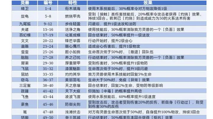 灵兽特性表