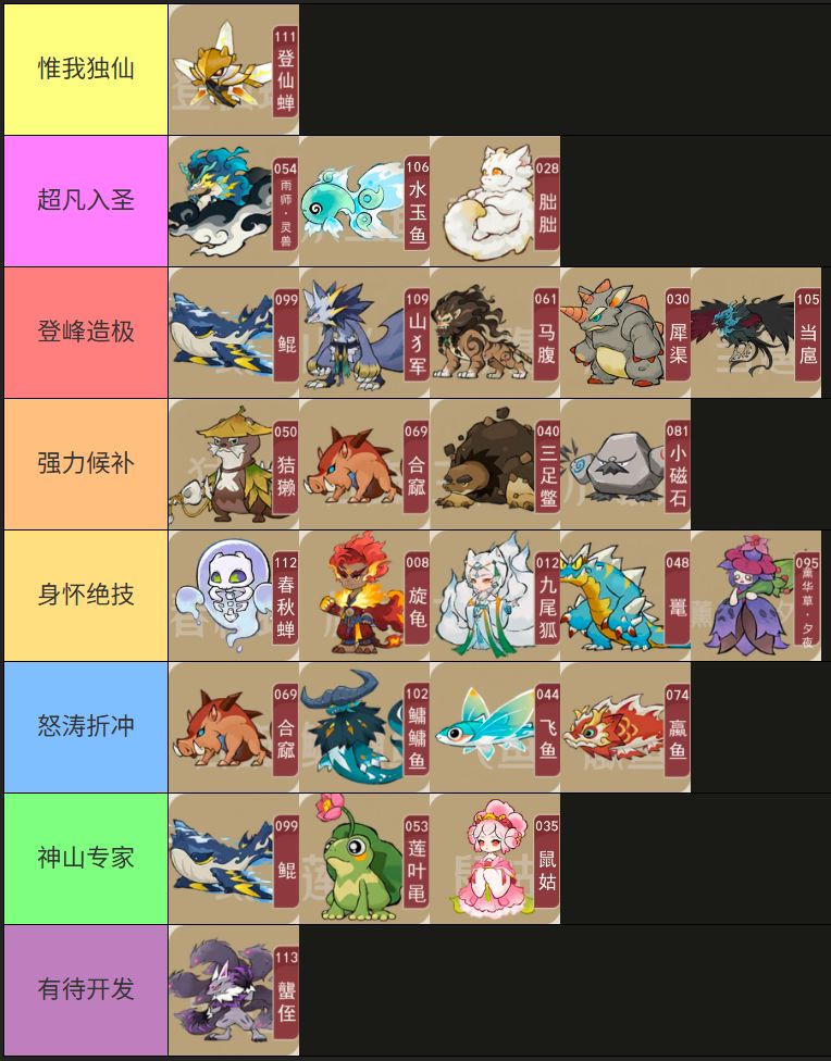 前言 根据前两次的强度榜反馈,本着更加严谨的态度。我们对t表细分为了3个板块,御兽对决、公平竞技(单打)、公平竞技(双打)。 御兽对决 这次调整对于上一周的强势灵兽进行了打压,尤其是针对御兽对决的环境影响严重的灵兽,有了很大的削弱。 当前版本御兽对决有着很强的实力差距影响,灵兽等级不会被压制,所以等级越高的灵兽,数值越高的灵兽,在御兽的环境更如鱼得水。 本次表格根据当前玩家整体拥有的高等级