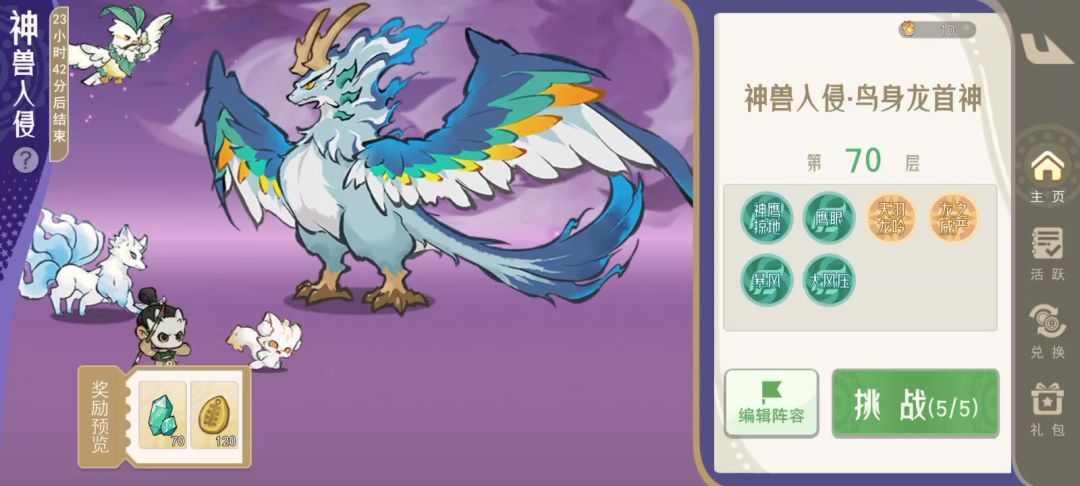 【神兽攻略】XX 层鸟身龙首神速通技巧 目前这个活动没啥挑战,难度纯福利,推荐雨师,马腹,冰九尾,目前人手一只雨师和马腹,新手实在打不过的话,就上一级豪鱼,或者舍身冲撞加快躲开,拿命换命,这种技能去打,各位大佬,点点赞,有什么不足?大佬们在底下评论就OK#山海进化录