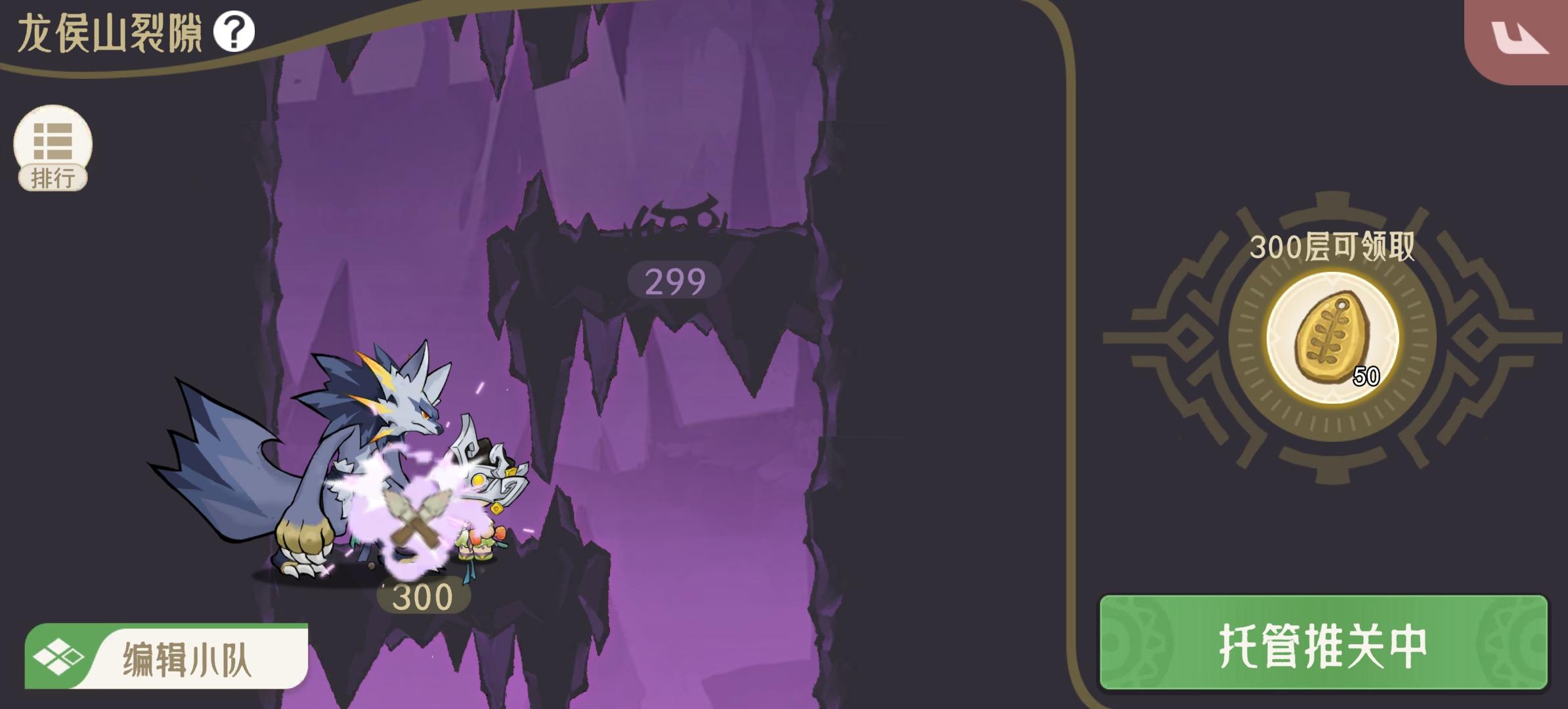 龙侯山裂隙宠物推荐及顺序,这套阵容我从120层打到300层的,后面没换一次阵容顺序,一直托管就能过,宠物技能选三辅助一伤害,速度鞋等级越高越好