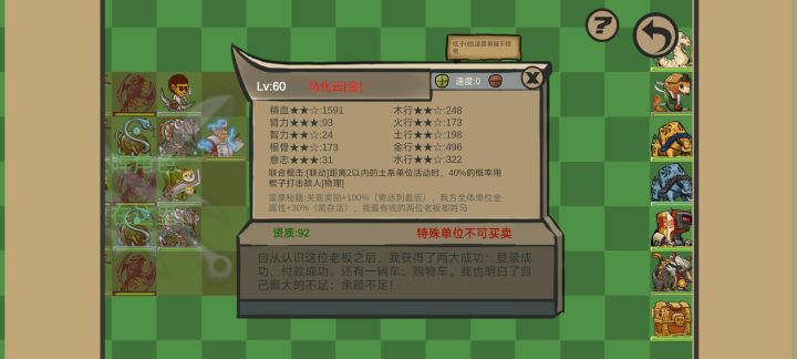 有点磕磕绊绊的过了。 冰蛙可以刷出来。还有人不知道可以刷? 攒钱攒够一定数目就可以激活商店的 tom中途阵亡,导致技能发动率大幅下降,以及输出降低。 还有人不知道tom怎么获得? 在厕所门口等30分钟tom就会出来 说到哪里了? 对,输出降低了。 后面山丘的控场也起到了很大的作用。 残缺的阵型最后还是过了。 除了白虎有一个顶级被动莽荒的肝肾之外,其他的资质都比较普通。