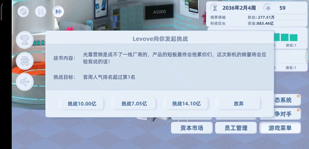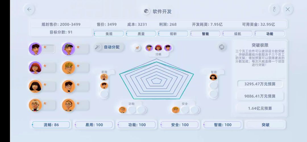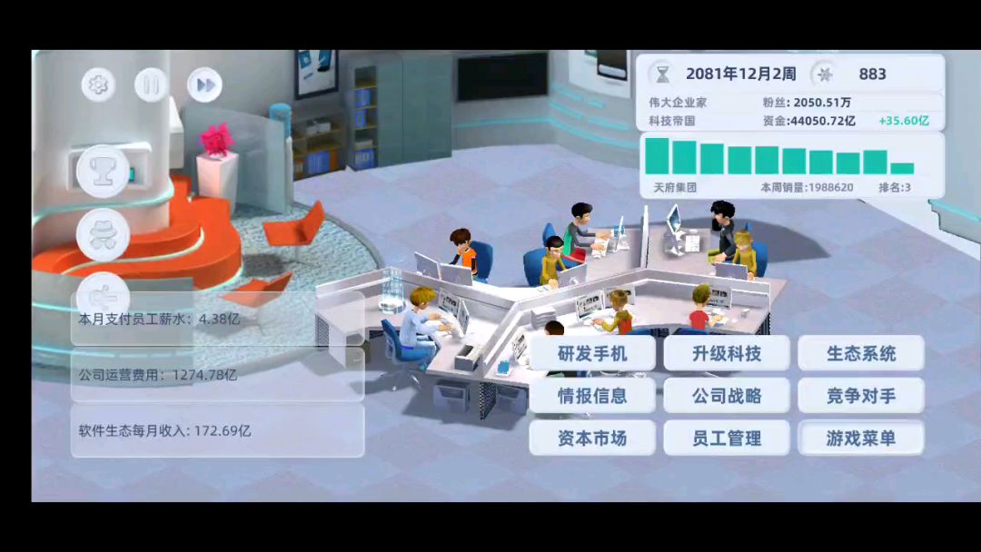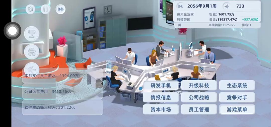手机价格直接开始做最高端的,品质也一样,进去不用加点,一直点完成,然后刷科技有什么升什么,35年完全体毕业(收购所有公司,生态系统全升满)。