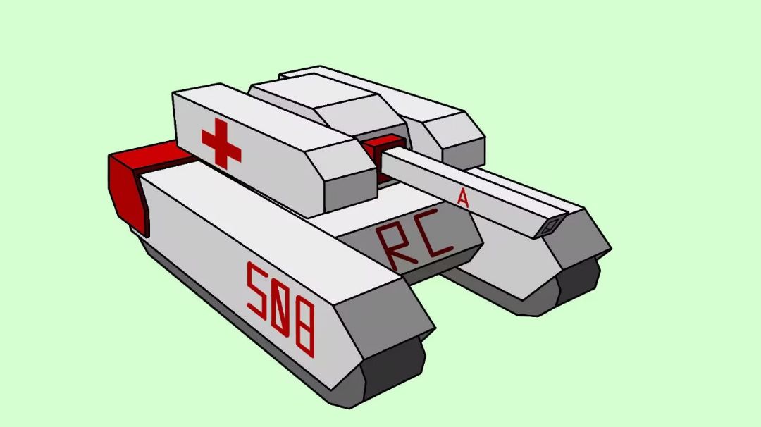开头先给观众朋友们道个歉,由于作者手机上的Prisma3D突然升级,部分功能已被更新,最明显的一点就是不支持多重选中了,因此以后的3D模型图上可能再也不会出现蓝色描边了,即可能无法再清楚地将坦克的轮廓描绘出来,在此表示无限的歉意(磕头) 那么进入正题 医疗坦克 编号:508 分类:中坦 装填时间:1.5秒 仰角:20度 俯角:5度 技能:改良纳米激光 价格:580魔方直接购买(5月8日,世界红十字