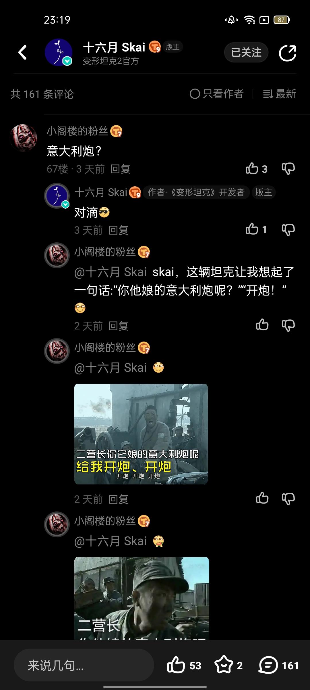 不是,我昨天才随便说这个新坦克有点像意大利炮,结果skai还真把这新坦克起名为意大利炮?🤔🤔🤔,这话是真没得说,感觉这名字好像是我起的,如果我没说出意大利炮这个字,可能skai都想不出来这个坦克的名字😂😂😂😅😅😅