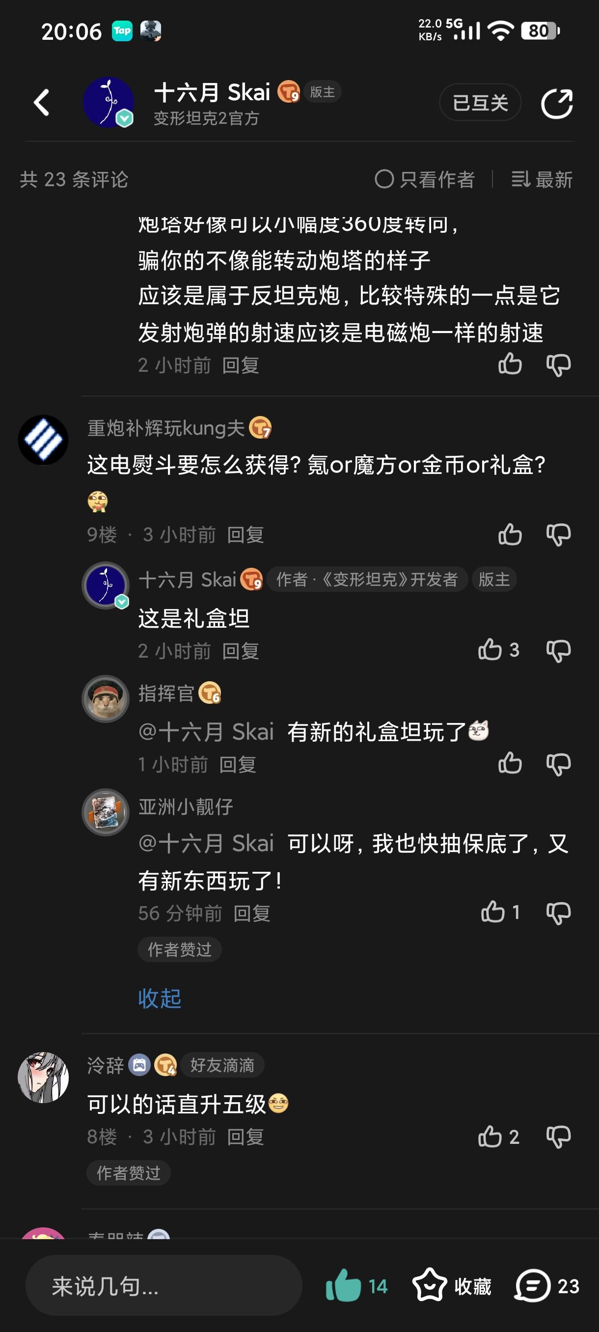 春节版本既然已经在制作了那我也再回到刚入圈的时候,搞一个有意思的东西而这就是原创坦克,春节烟花自行火炮原创坦克:春节烟花自行火炮1技能:上滑使用右边的三连发烟花榴弹,发射三个烟花造成范围伤害重点是烟花音效和功夫的气流声一样,属于特殊音效三发烟花榴弹会在上滑处落下 最远射程是五个地图地板块,的距离2技能:下滑使用左边烟花导弹,伴随着烟花的飞天声有着和高轨导弹一样的效果,可以隐藏之后在下滑处落下基