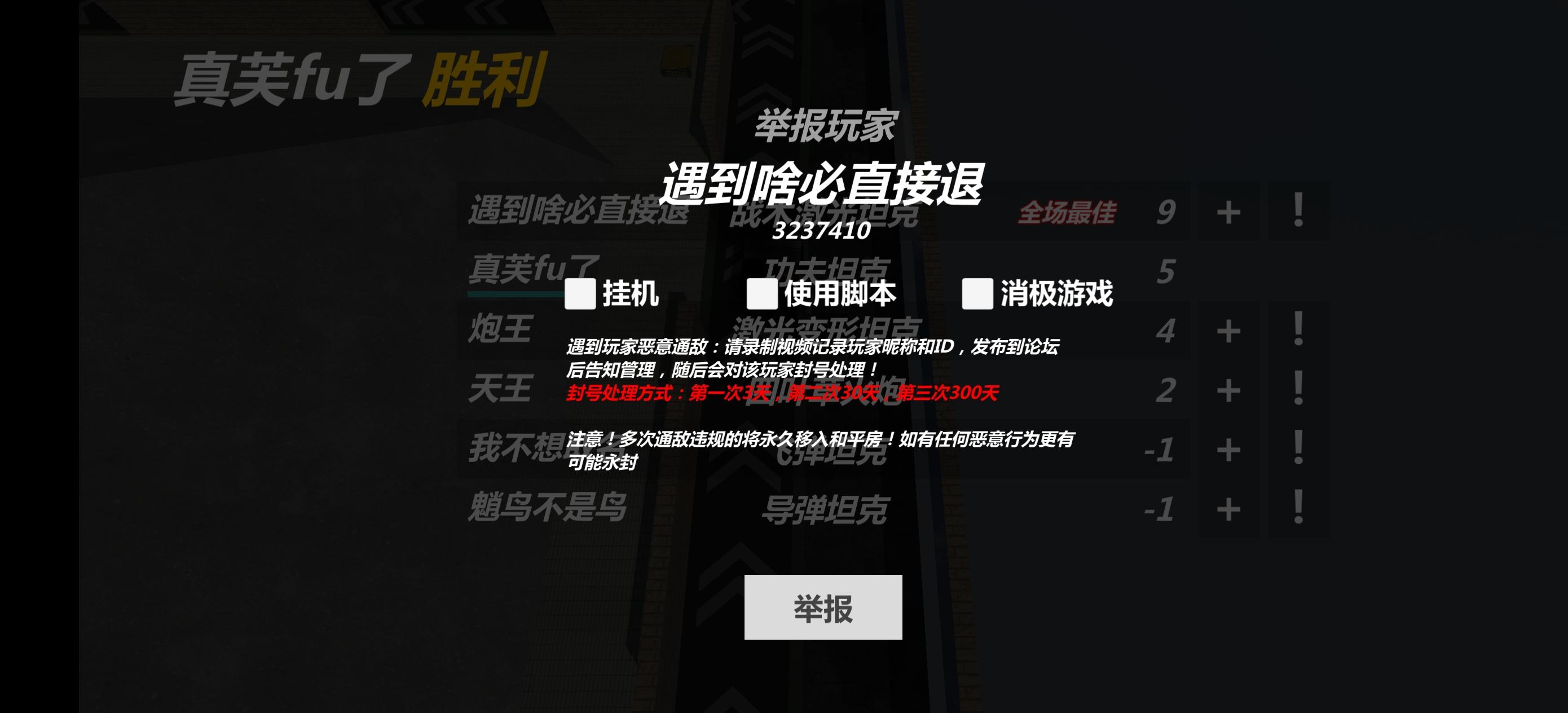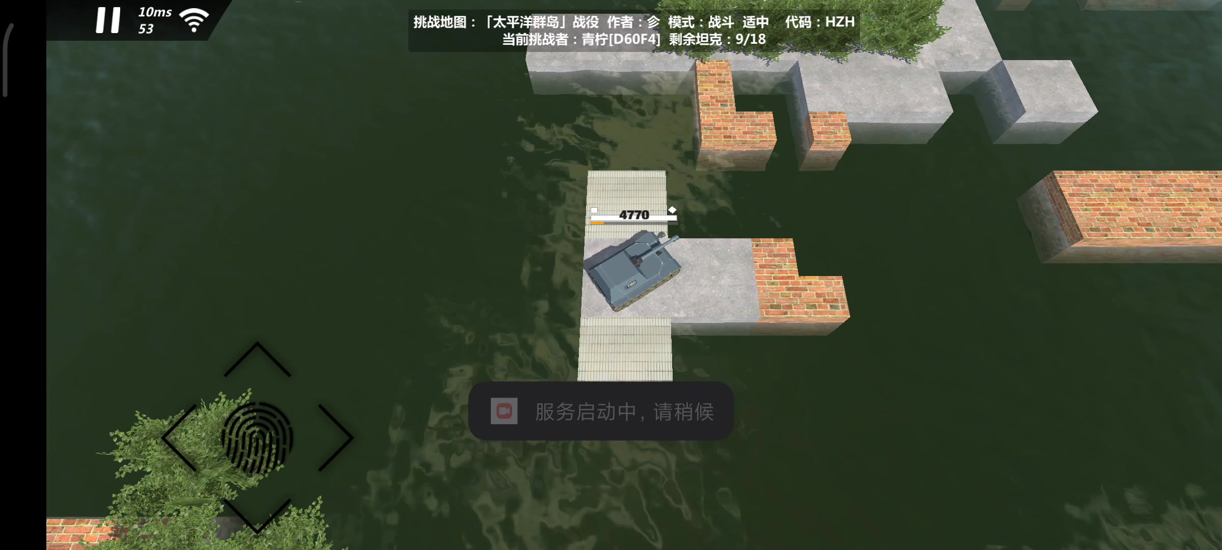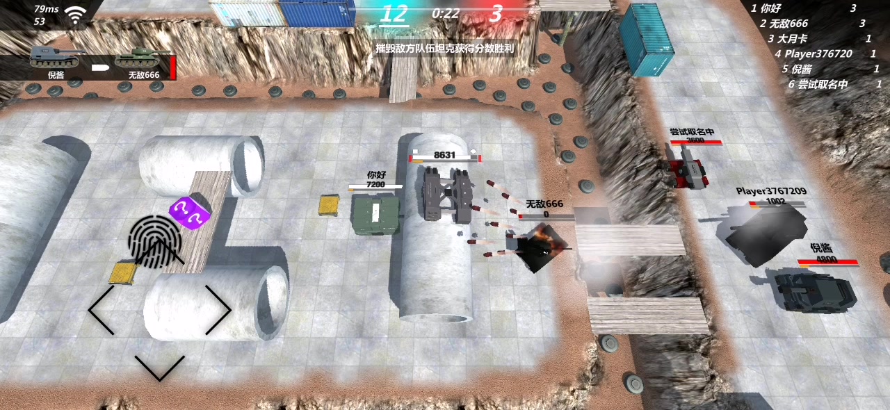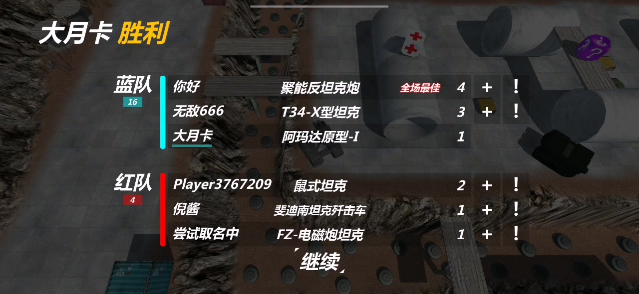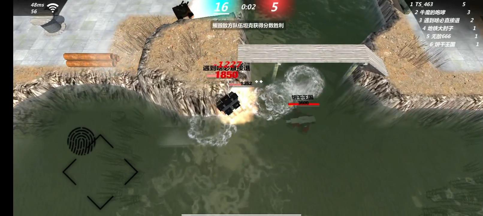FZ-电磁炮坦克想利用跳崖坠落的瞬间开炮击杀我,可惜炮弹没击中我,自己还不幸落水。御剑者飞弹坦克因为飞弹飞行轨道的弯曲程度有限,实在无奈与我同归于尽。为什么他俩如此勇猛,因为比分相差太大而且比赛时间仅剩几秒了,没机会翻盘了。