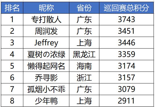 来了来了,2020UNO中国线上巡回赛第2站“芒种杯”周赛的最终战绩来了!在这短短一天的时间,各位大神各显身手,上周的一天3500分的记录仅保持了一周就被打破,实在厉害!话不多说,我们现在就来和大家分享本次“芒种杯”周赛的最终战报~首先来看看全国排行榜的前8名,放眼望去前8名里面广东省的小伙伴占据了3位,真的太狠了!第一名的“专打散人”也被散人大大本人翻牌了,简直不要太搞笑!排名首位的是来自广